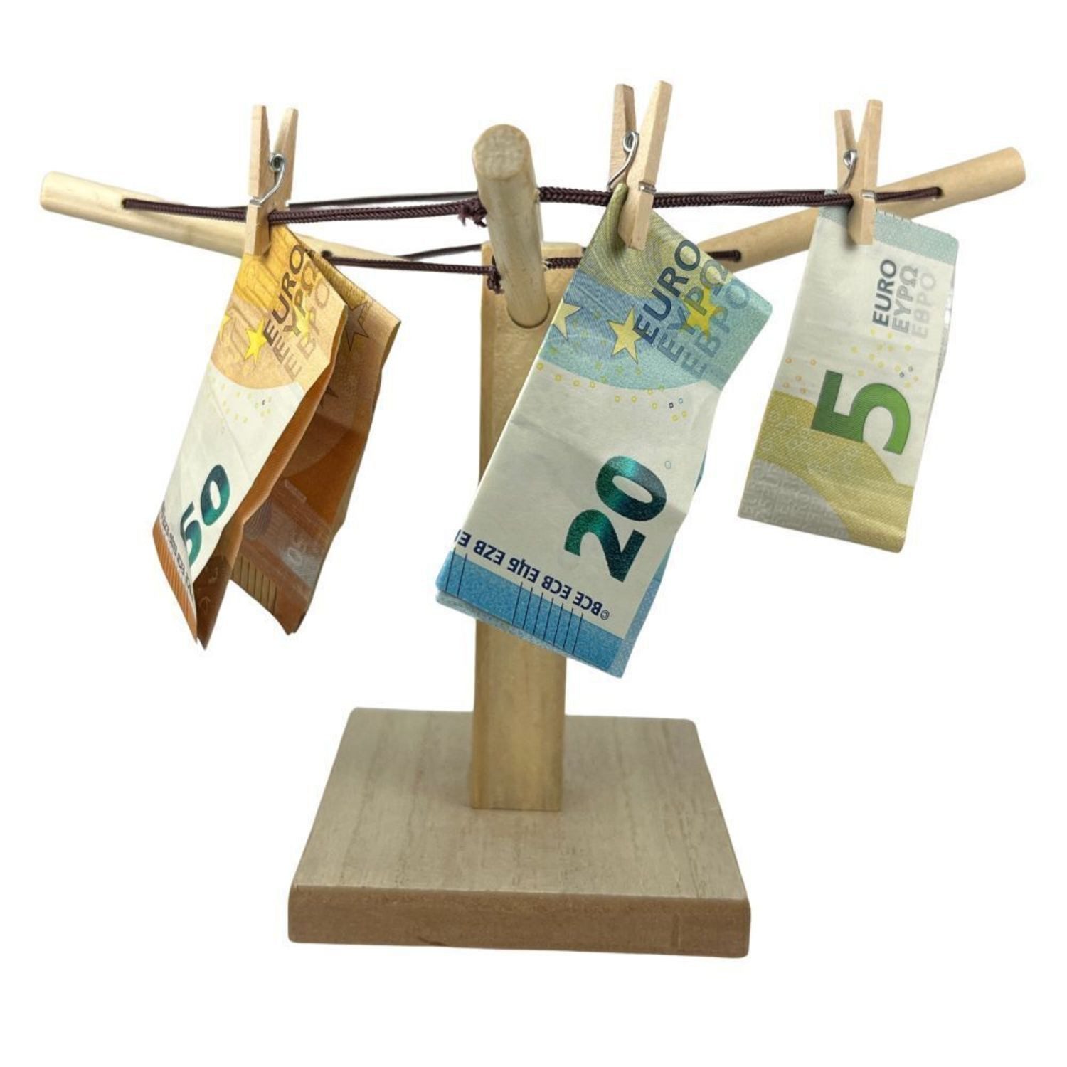 Auf der Verpackung steht eine Anleitung, wie man ein Hemd aus einem Geldschein faltet, um die Wäschespinne optimal zu nutzen. Es befindet sich kein Geld im Lieferumfang!