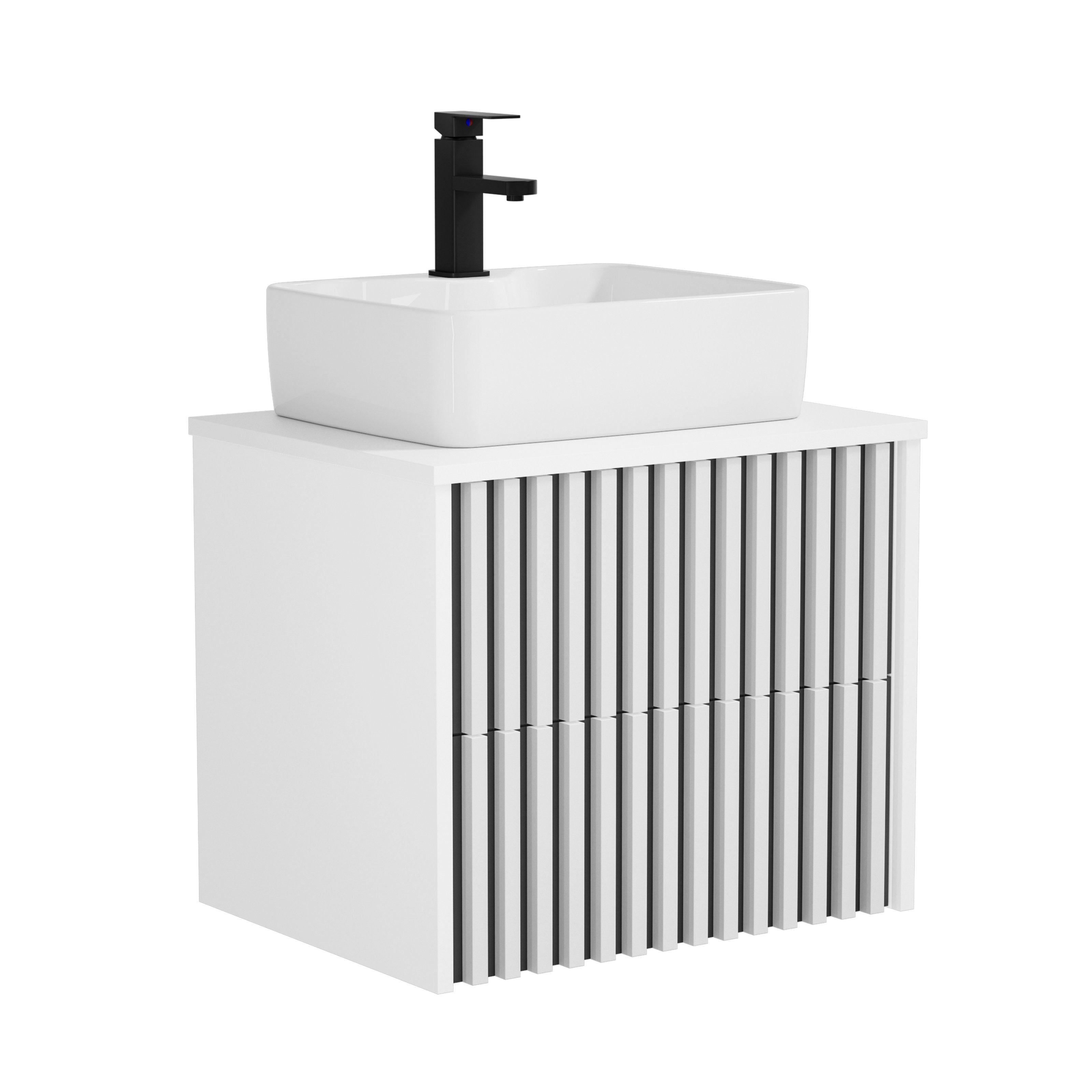 Platz sparende WandmontageDurch die Wandhängung des Unterschranks wird effektiv Nutzfläche gespart, ohne Abstriche bei der Funktionalität machen zu müssen. Das Design ermöglicht es, den Bodenbereich freizuhalten und so den Eindruck von mehr Freiraum in Ihrem Badezimmer zu schaffen.