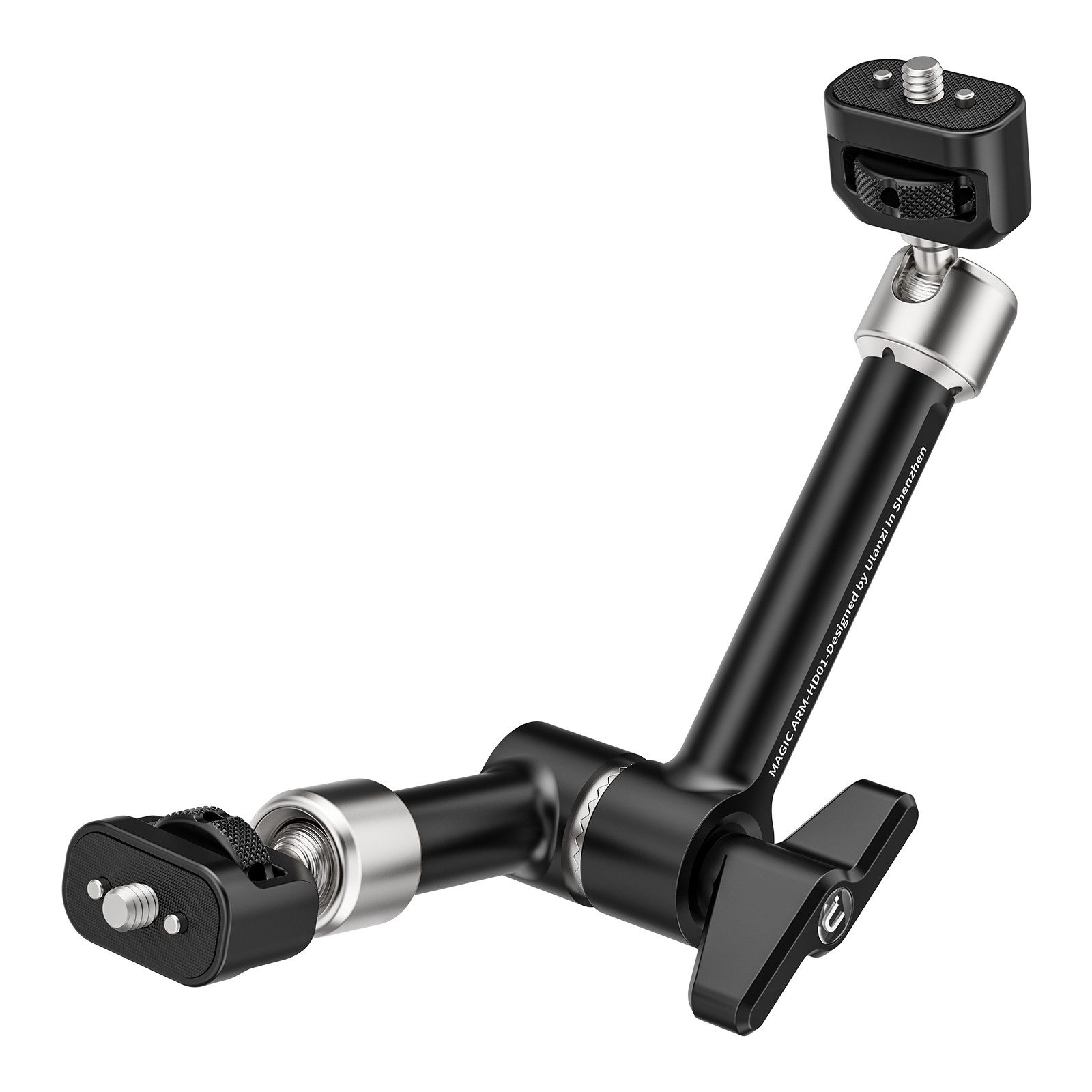 Der Ulanzi R011a Magic Arm mit Crab Clamp T018 ist der wahrgewordene Traum eines jeden Filmemachers und bietet eine perfekte Mischung aus kompakter Tragbarkeit, robuster Verarbeitungsqualität und außergewöhnlicher Flexibilität. Dieser Magic Arm wurde für Filmemacher entwickelt, die viel unterwegs sind, und lässt sich auf nur 18 cm zusammenfalten, sodass Sie ihn einfach in Ihrem Rucksack verstauen können. Trotz seiner kompakten Размер verfügt er über eine robuste Edelstahlkonstruktion mit größerem Durchmesser für verbesserte Haltbarkeit, sodass er Geräte mit einem Gewicht von bis zu 3 kg tragen kann. Der Magic Arm glänzt mit seiner 360°-Einstellbarkeit dank der 1/4"-Gewinde an beiden Enden. Diese Vielseitigkeit ermöglicht Ihnen atemberaubende Aufnahmen sowohl in horizontaler als auch in vertikaler Ausrichtung, wobei der verstellbare Feststellknopf eine sichere Positionierung in jedem Winkel gewährleistet. Kompatibilität ist nie ein Problem, da der Ulanzi R011a über ein universelles 1/4"- und 3/8"-Gewindeloch, Arri-Positionierungslöcher und einen Anti-Off-Pin zur sicheren Befestigung an Stativen, Lichtstativen, NATO-Schienen und mehr verfügt. Abgerundet wird dieses funktionsreiche Paket durch die integrierte Krabbenklemme, die einen großen Klemmbereich von 24-60 mm bietet. Der unabhängige Feststellknopf, die verstellbare Backenöffnung und das rutschfeste Gummipolster sorgen zusammen für einen festen und sicheren Halt auf runden und flachen Oberflächen und halten Ihre Kamera, Ihr Licht oder Ihren Monitor fest an Ort und Stelle, damit Sie sorgenfrei fotografieren können. Egal, ob Sie ein erfahrener Filmemacher, ein angehender Content-Ersteller oder ein leidenschaftlicher Fotograf sind, der Ulanzi R011a Magic Arm mit Krabbenklemme T018 ist die vielseitige und zuverlässige Halterung, die Sie brauchen, um Ihre Filmaufnahmen zu verbessern. Spezifikationen: Materialien: Aluminiumlegierung + Edelstahl Abmessungen: 330 x 111 mm ± 2 mm Gewicht: 564 g ± 10 g Tragfähigkeit: 3 kg