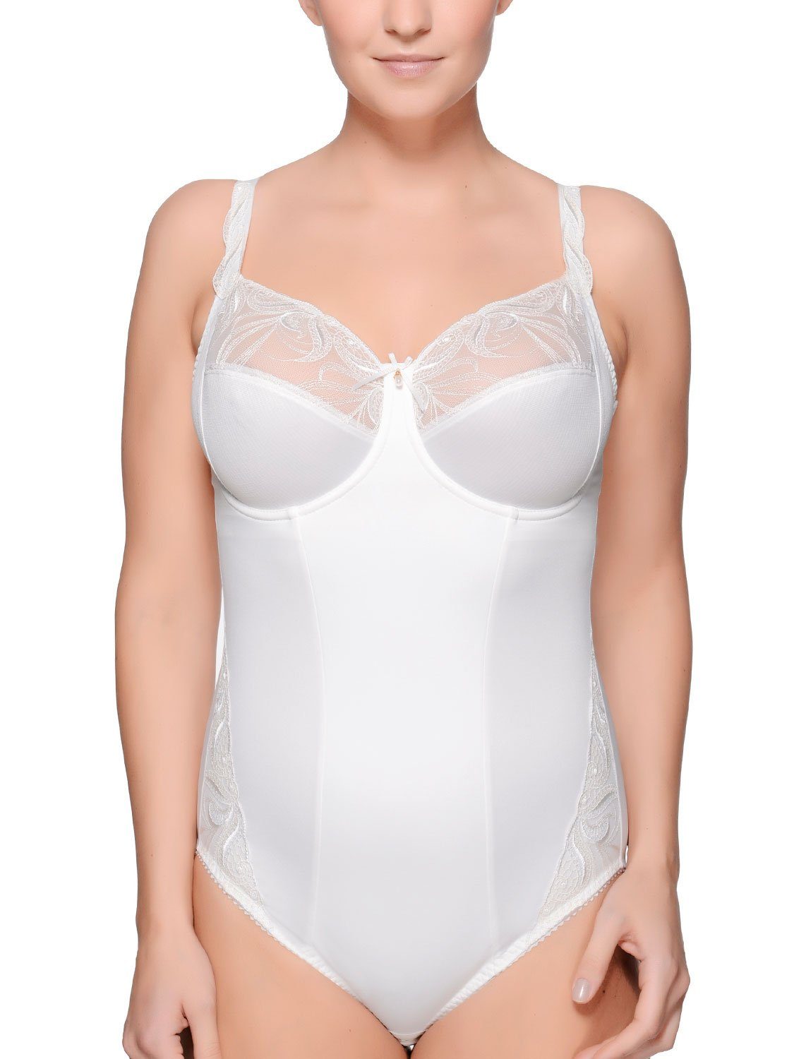 Body mit Bügel von der Marke Ulla aus der Serie Carmen. Besondere Merkmale des Artikels sind 3-teilige Schnittführung, Mittelpartie ist doppel unterlegt, längenverstellbare Träger, Beinausschnitt mit Stickerei Einsätze und Häkchenverschluss im Schritt. Ulla Dessous produziert Dessous und Bademode mit viel Liebe zum Detail, und verpackt die große Größen Frau verspielt und romantisch in einzigarte und sexy Wohlfühl-Unterwäsche.