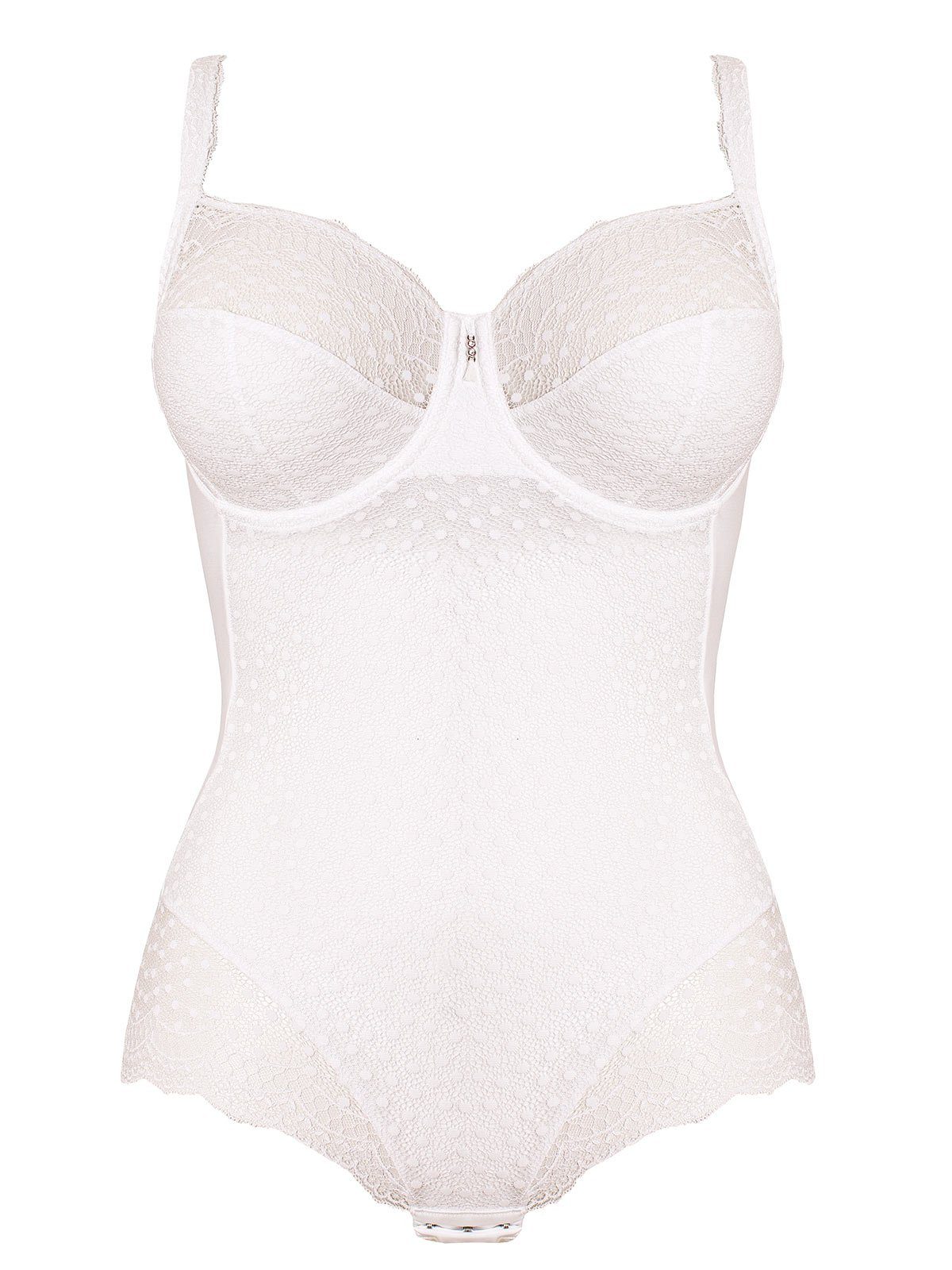 Body mit Bügel von der Marke Ulla aus der Serie Josy. Besondere Merkmale des Artikels sind Cups mit Seitenblende für mehr Halt, Body mit leichtem Shape Effekt, nahtloser Beinabschluss aus Spitzengallon, verstellbare Träger und Häkchenverschluss im Schritt. Ulla Dessous produziert Dessous und Bademode mit viel Liebe zum Detail, und verpackt die große Größen Frau verspielt und romantisch in einzigarte und sexy Wohlfühl-Unterwäsche.