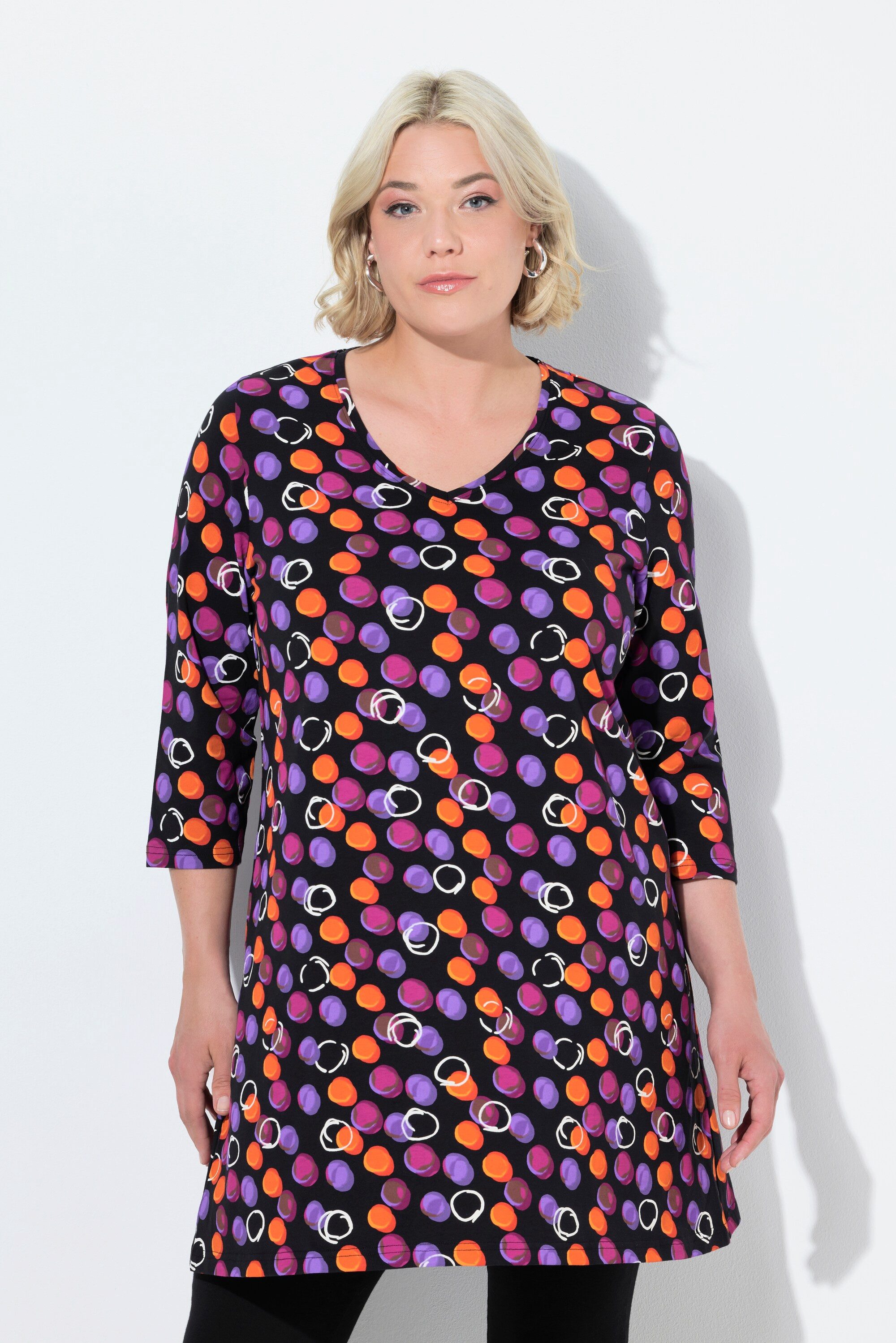 Ulla Popken Longshirt Longshirt Punkte A-Linie V-Ausschnitt 3/4-Arm