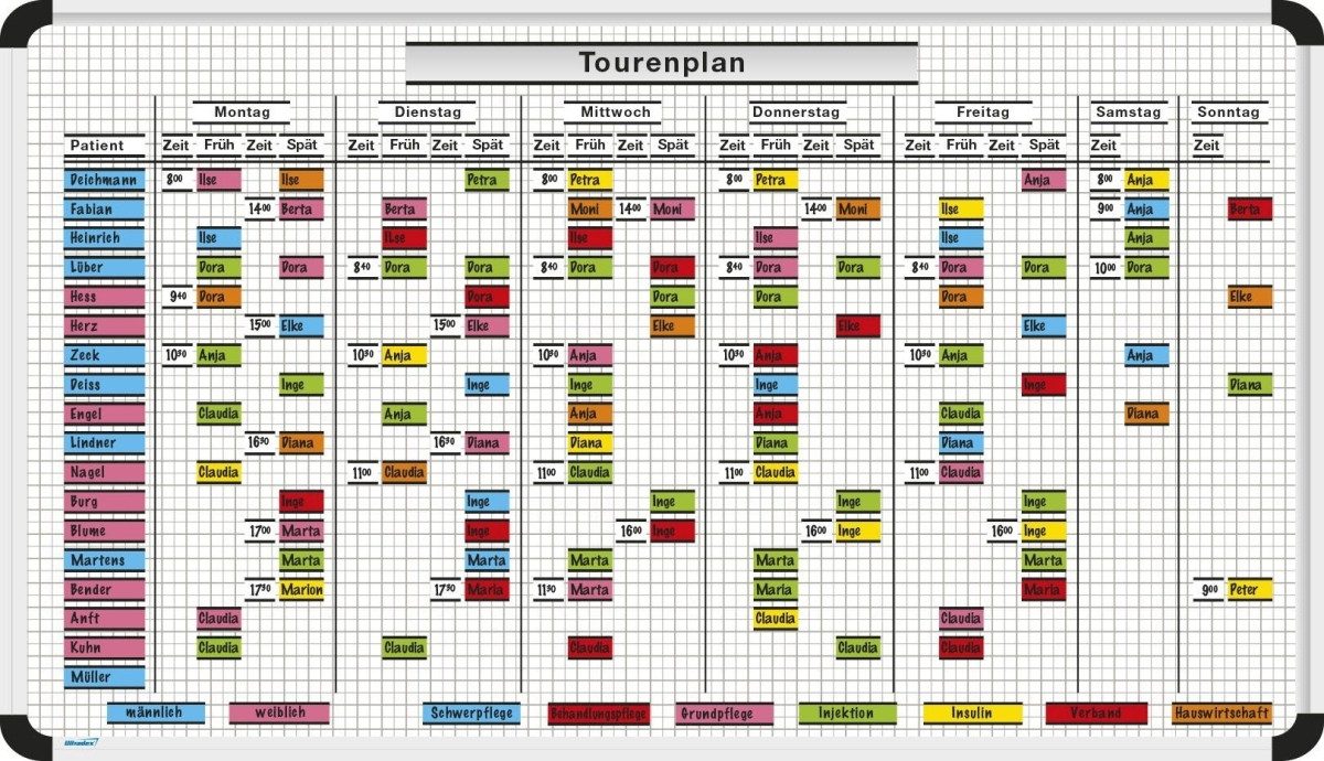 Wandtafel Tourenplan Magnettafel-Set 1120x900mm für 40 Patienten/1 Woche