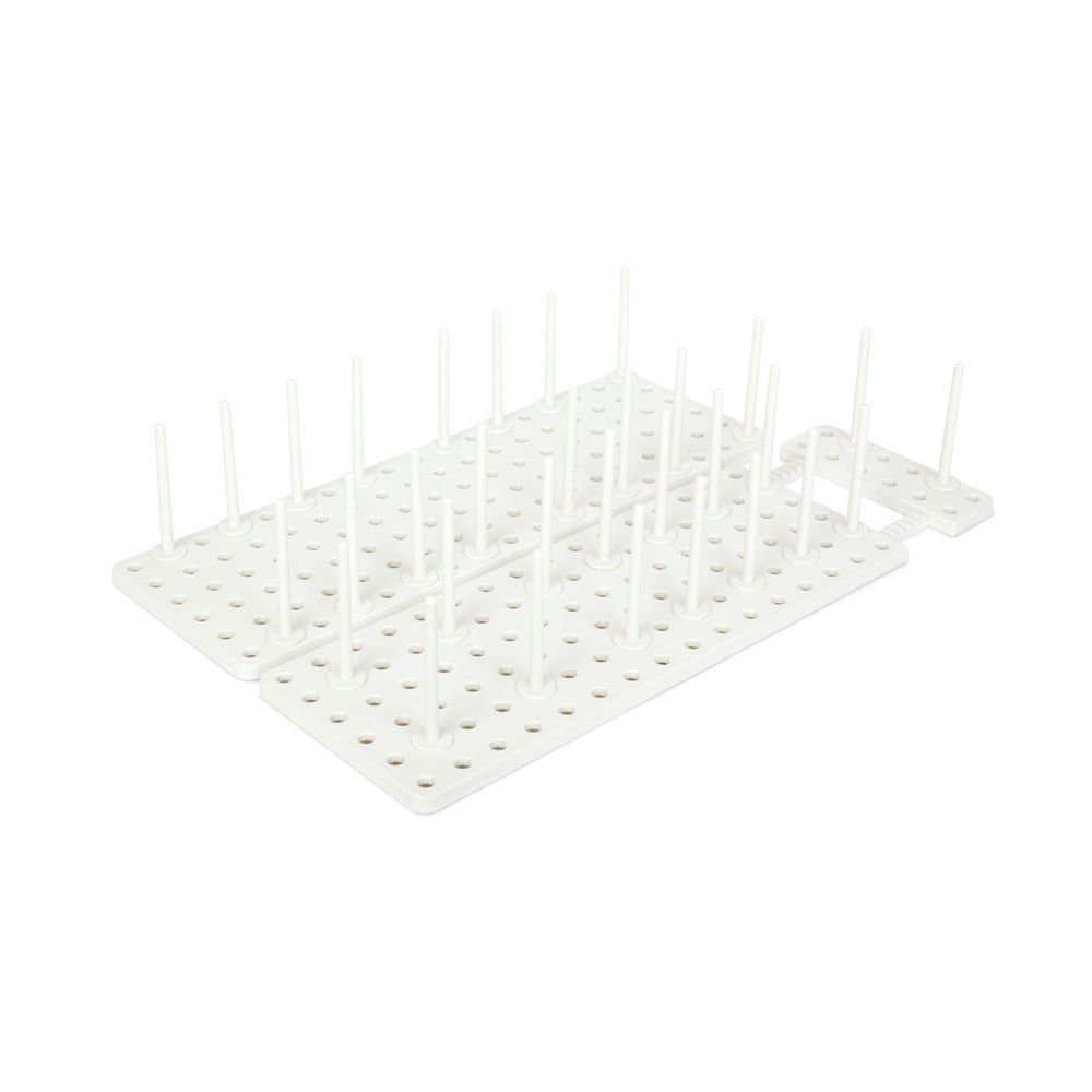 Was Peggy so einzigartig macht, sind die verstellbaren Basen und die abnehmbaren Stifte, die jederzeit neu positioniert werden können. Sie können selbst entscheiden, wo sie platziert werden sollen, was bedeutet, dass Sie den perfekten Platz schaffen können für Ihre Plastikbehälter und Deckel, Ihr Kochgeschirr einschließlich Töpfen, Pfannen und Deckeln, Ihre Rührschüsseln, Ihre Kochutensilien und so ziemlich alles andere, was Sie organisiert aufbewahren möchten. Mit einer Matrix von 108 Löchern und insgesamt 16 Stiften gibt es buchstäblich Hunderte von verfügbaren Konfigurationen, was nahezu unbegrenzte Staufläche bedeutet. Um eine perfekte Passform zu gewährleisten, kann jede Basis um weitere 8,25 cm verlängert werden und ist mit rutschfesten Füßen ausgestattet, um sicherzustellen, dass Peggy nicht verrutscht.