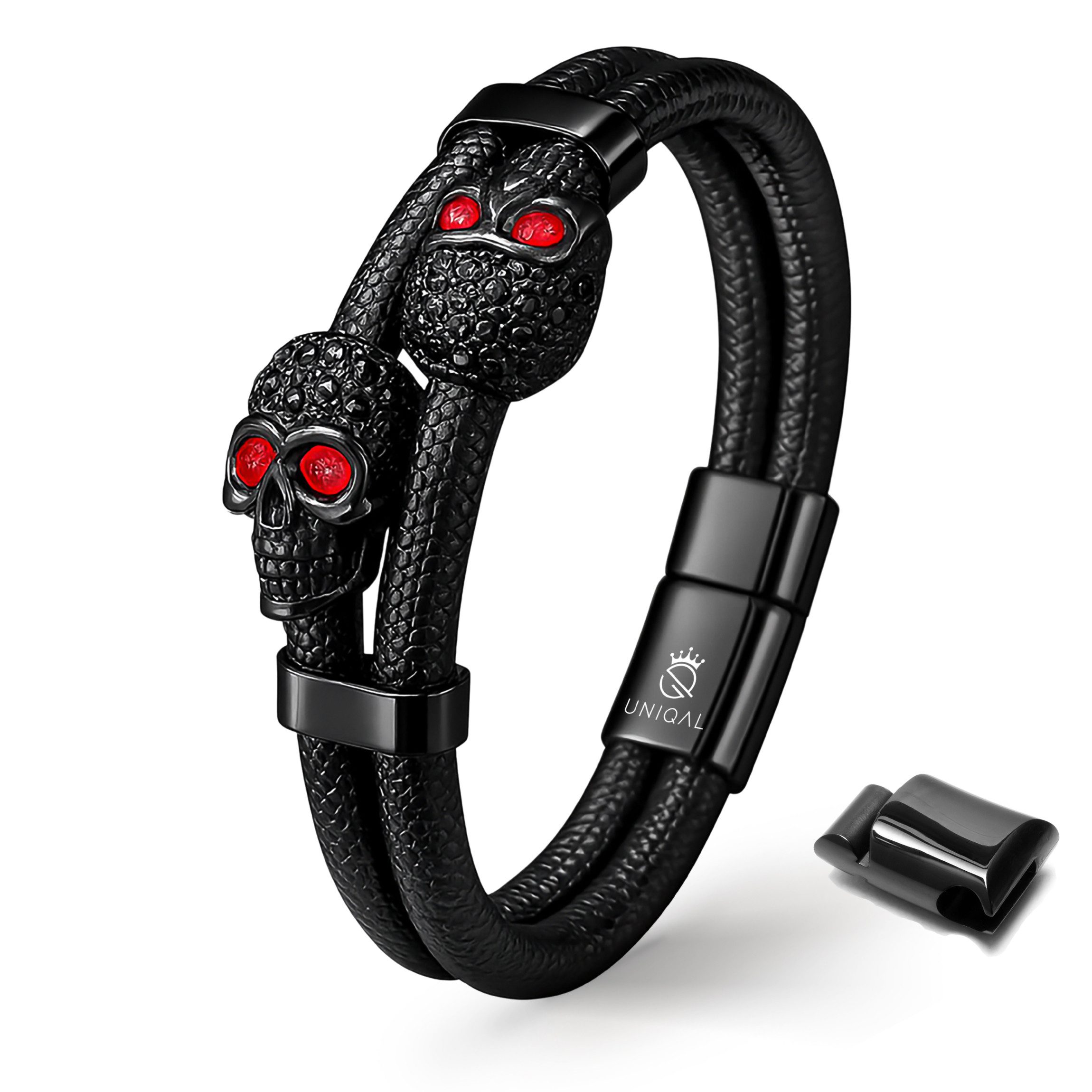 Bestellen Sie noch heute und entdecken Sie die zeitlose Eleganz und persönliche Note dieses einzigartigen Lederarmbands mit Edelstahlelementen und Totenkopf. Perfektionieren Sie Ihren Look und zeigen Sie Ihre Persönlichkeit mit Stil.