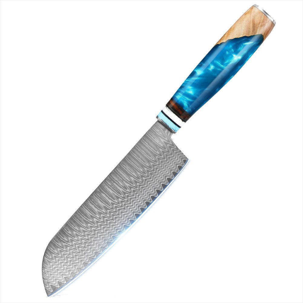 Dieses elegante und exklusive Santokumesser aus Damaststahl mit Harzgriff ist ein besonderes Geschenk für viele Gelegenheiten.