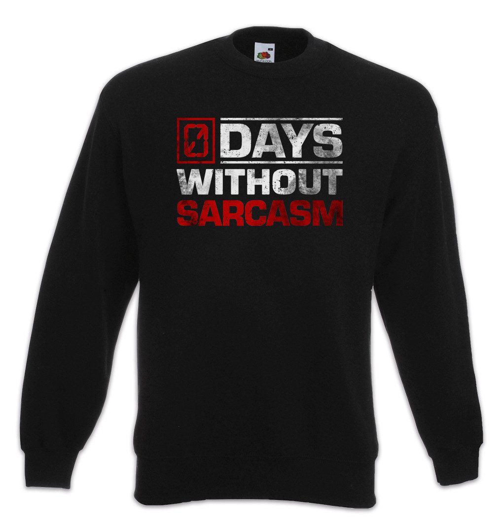 Mit unserem Days Without Sarcasm Sweatshirt setzt Du das richtige Statement und zeigst deinem Umfeld was Dich wirklich beschäftigt! Das ideale Geschenk für Geburtstage, Weihnachten, Ostern, Vatertag und Muttertag oder einfach als Aufmerksamkeit für einen guten Freund/Freundin, Kollegen/Kollegin!