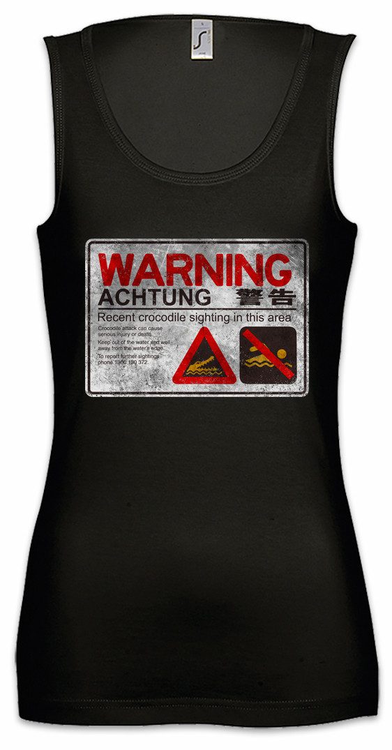 Mit unserem Crocodile Warning Sign II Ärmelloses Damen T-Shirt setzt Du das richtige Statement und zeigst deinem Umfeld was Dich wirklich beschäftigt! Das ideale Geschenk für Geburtstage, Weihnachten, Ostern, Vatertag und Muttertag oder einfach als Aufmerksamkeit für einen guten Freund/Freundin, Kollegen/Kollegin!
