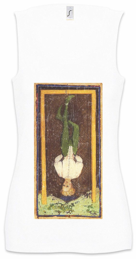 Mit unserem Tarot Arcanum Hanged Man Ärmelloses Damen T-Shirt setzt Du das richtige Statement und zeigst deinem Umfeld was Dich wirklich beschäftigt! Das ideale Geschenk für Geburtstage, Weihnachten, Ostern, Vatertag und Muttertag oder einfach als Aufmerksamkeit für einen guten Freund/Freundin, Kollegen/Kollegin!