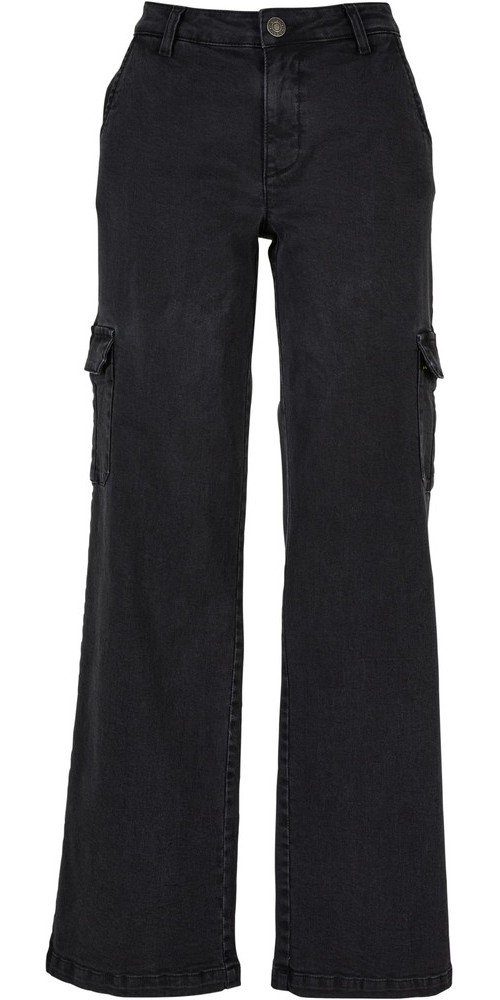 Mit einem hohen Bund, geraden Beinen und den Cargo-Taschen auf dem Oberschenkel bietet diese Frauen Cargo Hose einen pragmatischen Style. Der Bund ist mit Knopf und Gürtelschlaufen ausgestattet. Seitlich sitzen zwei Seitentaschen. Abgerundet wird der Style von zwei Pattentaschen auf dem Gesäß. Tragekomfort versprechen wiederum die angenehme Loose Fit Passform sowie das leicht elastische Material aus Stretch-Denim.