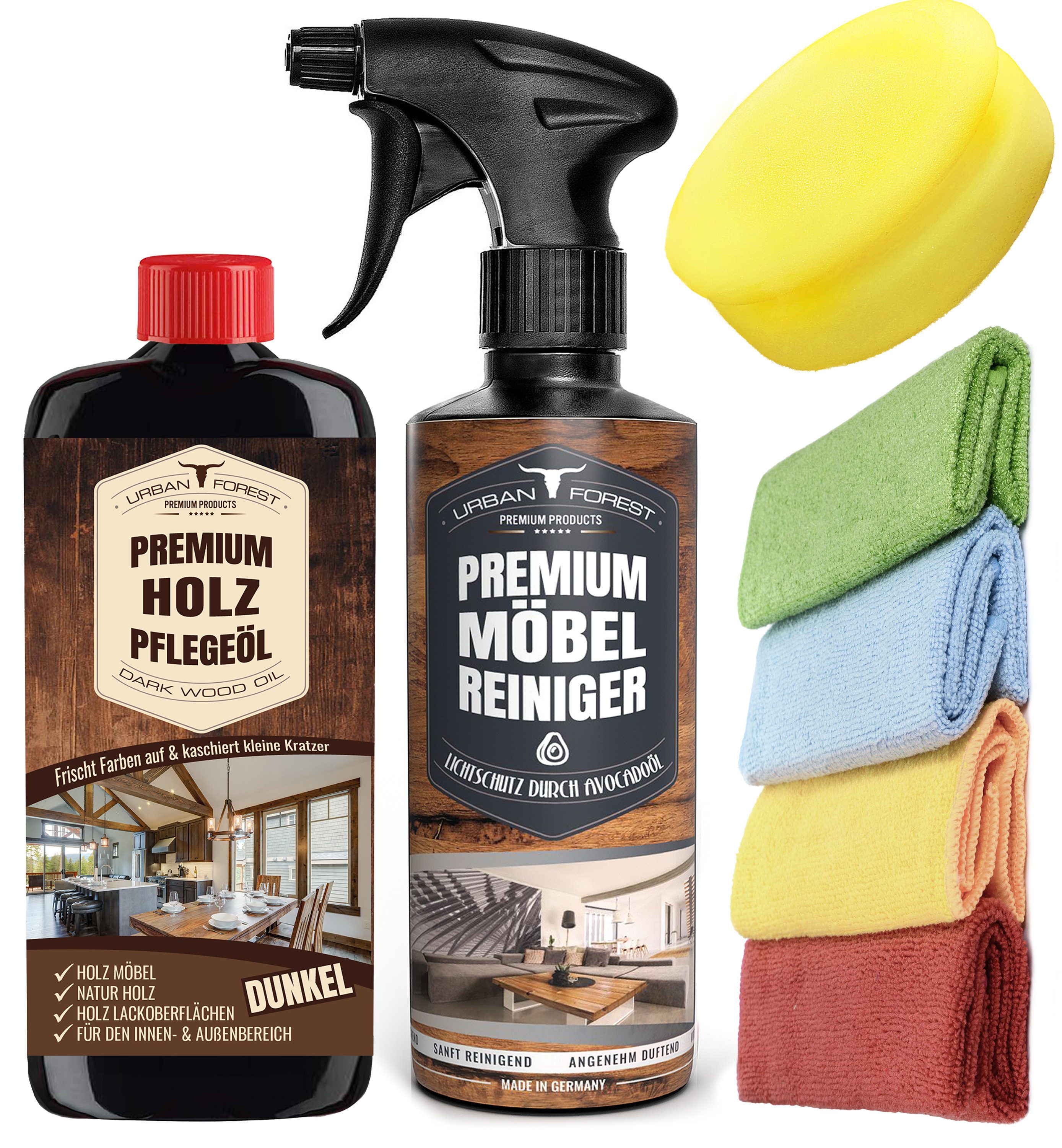 MÖBEL-ÖL DER SPITZENKLASSE: Dieses leistungsstarke Möbelpflegeöl wurde nach höchsten Standards für höchste Ansprüche hergestellt in Deutschland. Es pflegt, spendet Feuchtigkeit, um das Holz aufzubereiten & bietet optimalen Schutz für Möbel und Holzprodukte. Dabei ist es ähnlich wie ein Holz Regenerator oder Holzwachs dunkel einsetzbar. Als Möbel-Pflege & Holzschutz für innen und aussen ist es genauso geeignet wie als Holz-Pflege & Holz-Reiniger für Holz-Möbel PREMIUM HOLZÖL MIT BESTEN INHALTSSTOFFEN: Das Holzpflegemittel ist staubabweisend und eignet sich nicht nur zum Reinigen von dunklen Holzmöbel sondern ist auch geeignet als Möbel & Holz-Politur in Profi Qualität. Dieses Pflegeöl für Möbel hat vergleichbare Anwendungsmerkmale wie u.a. Möbelpolitur dunkel für dunkle Oberflächen, Teak-Öl, Holzreiniger, regenerie-rendes Möbel-Spray, oder Möbel Balsam. Es beseitigt Kratzer und frischt auf MÖBEL & HOLZ PFLEGE REINIGUNGSMITTEL: Natürliche Stoffe wie Holz & daraus produzierte Massivholzmöbel benötigen stetige Reinigung und Pflege. Dieses Premium Holzpflegeöl und Fleckenentferner für Möbel entfernt mühelos hartnäckigste Verschmutzungen, reinigt sanft, führt zu neuem Glanz & verleiht optimalen Schutz. Es ist bestens geeignet zur Entfernung von Fett- und Wasserflecken, Teerflecken, Putzstreifen, wie auch zur Pflege von Parkett & Antiquitäten HOLZPFLEGEMITTEL FÜR ALLE HOLZARTEN: Anders als herkömmliche Holz Pflege Öle aus dem Baumarkt ist dieser Holz & Möbel Allzweckreiniger auch optimal geeignet als Möbel Pflege für Kunststoff Möbel & Gartenmöbel, oder als Fliesen-Reiniger. Es kann genauso nach der Holzbearbeitung als Holz-Schutz oder als Holzfarbe dunkel genutzt werden. Dabei erzielt die Holzpolitur bei der Holzpflege aussen mindestens so gute Erfolge wie bei der Holzpflege innen EINFACHE ANWENDUNG FÜR PERFEKTE ERGEBNISSE: Die dunkle Politur für Holzschutz auf ein fusselfreies Tuch geben & anschließend die zu reinigenden Oberflächen gleichmäßig & dünn einreiben. Nach 30-60 Sekunden mit einem weichen Tuch nachwischen & der Glanz-Effekt ist direkt sichtbar. Sollte nach 30 Minuten noch ein leichter, öliger Film zu sehen sein, kann das überschüssige Holzöl mit einem Tuch abgewischt werden. Geeignet u.a. als Naturholzpflege & Reiniger für lackierte Flächen PREMIUM MÖBEL-REINIGUNG AUS DEUTSCHER MANUFAKTUR: Das Holz-Pflegemittel mit natürlichem Avocado-Öl eignet sich nicht nur zum Reinigen von Holz und Naturmaterialien sondern ist auch gleichzeitig ein Gastro-Reiniger in Profi Qualität. Als Aktiv-Reiniger wurde er von Reinigungsexperten in Deutschland entwickelt & nur mit besten Premium Inhaltsstoffen produziert. Dieses Pflege- und Reinigungsprodukt kann wie Isopropanol als Spezialreiniger u.a. als Möbel Intensiv Reiniger genutzt werden SPEZIALPUTZMITTEL FÜR PROFIS: Natürliche Stoffe wie Holz und Stein benötigen stetige Reinigung und Pflege. Dieser Premium Möbelreiniger ist geschaffen für höchste Ansprüche zur Möbelreinigung, Möbelaufbereitung und Möbelauffrischung. Es bietet natürlichen Lichtschutz, führt zu neuem Glanz, schützt Holz vor Austrocknung & Rissbildung. Das Holz wird sauber und erhält seinen Glanz zurück. Es verlängert die Lebenszeit der Möbel dabei nachhaltig wie ein Profi-Reiniger PFLEGEMITTEL FÜR ALLE HOLZARTEN: Anders als herkömmliche Reinigungsmittel aus dem Baumarkt ist dieses Reinigungsmittel für Möbel auch optimal geeignet als Kunststoff-Reiniger zum Gartenmöbel reinigen, oder als Fliesenreiniger. Es kann zur regelmäßigen Reinigung als Holzpflegemittel genauso wie als Dielen Reiniger genutzt werden. Dabei erzielt der Aktivreiniger bei der Möbelpflege beste Erfolge. Эко-товар reinigt, pflegt und konserviert diese Holzpflege innen und aussen streifenfrei MÖBEL-REINIGER ANWENDUNG: Wir empfehlen, den Möbel Reiniger für Holz & Möbel auf einen Schwamm oder ein dünnes Tuch für Möbelpflege aufzusprühen & die Möbel durch wischen zu reinigen. Sprühen Sie den Reiniger nicht direkt auf die Möbel und testen Sie stets auf unauffälligen Stellen auf Empfindlichkeit. Bei starker Verschmutzung können Sie die Anwendung auch wiederholen. Tipp: Zur ergänzenden Möbelpflege & Möbelpolitur empfehlen wir unsere URBAN FOREST PREMIUM MÖBEL POLITUR