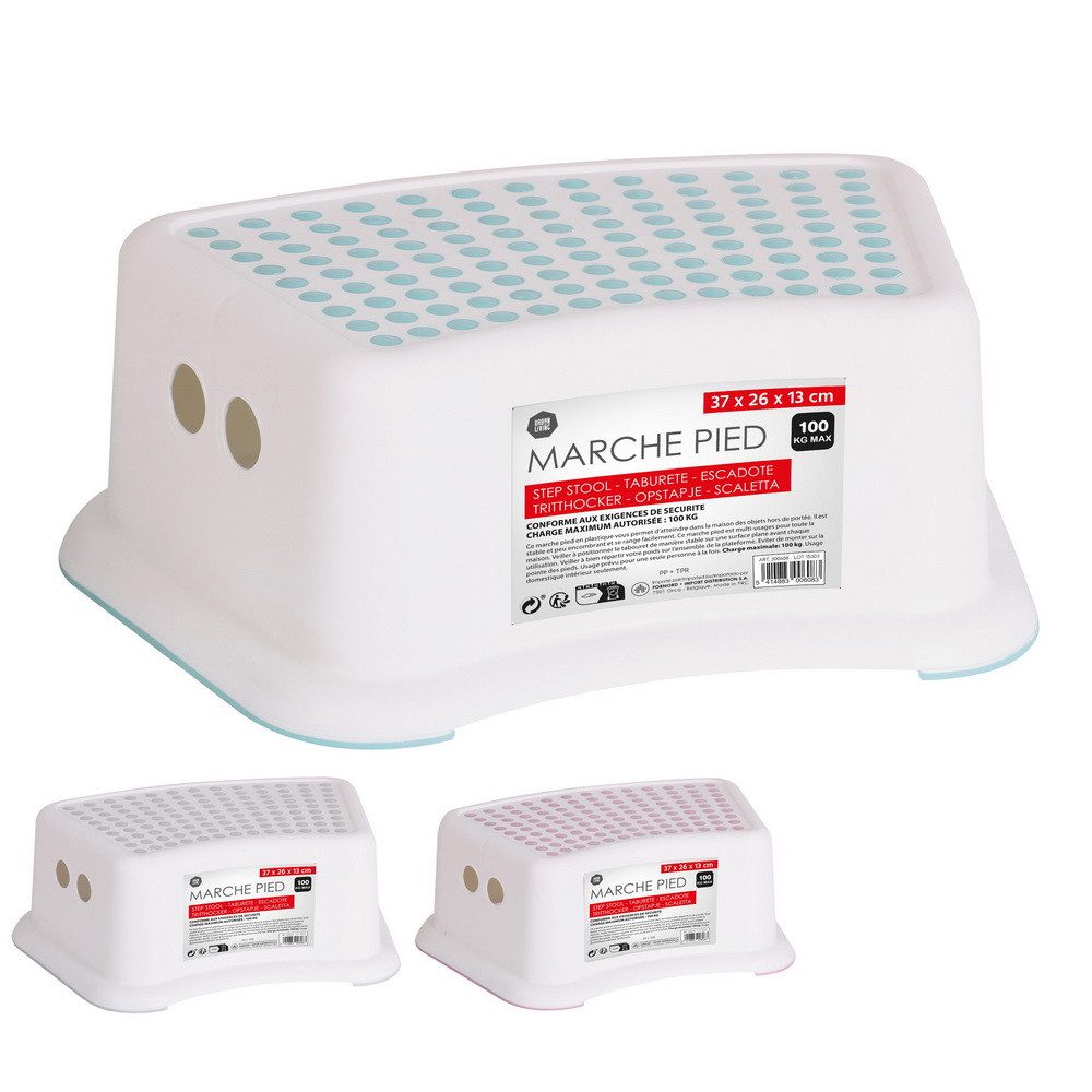 - Tritthocker / Tritthilfe / Tritt-Erhöhung - zum Erreichen von Gegenständen, die außerhalb der Reichweite liegen - vielseitig einsetzbar - stabil und platzsparend - Material: Kunststoff mit Anti-Rutsch-Noppen - Farbe: weiß mit farbigen Noppen (die Farbauswahl erfolgt zufällig) - Maße: 37 x 26 x 13 cm (LxBxH) - Maximal Traglast: 100 Kg - Nur für den häuslichen Gebrauch