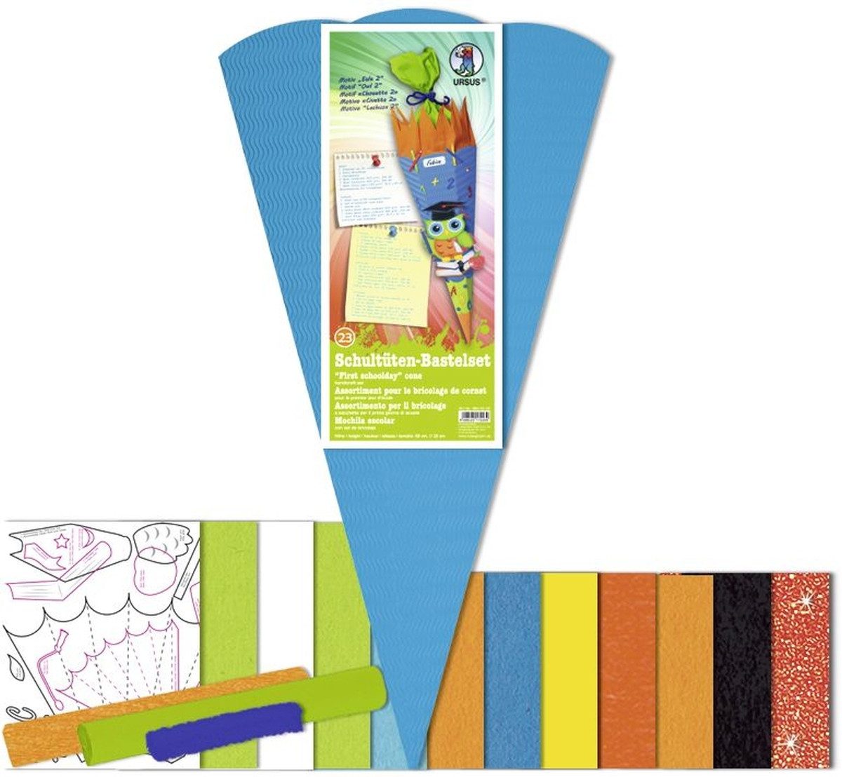 • Inhalt: 1 Schultüte aus 3D-Colorwellpappe, 2 Rollen Bastelkrepp, 250 x 50 cm, 1 Chenilledraht, 3 Blatt Fotokarton 300 g/qm, DIN A4, 7 Blatt Fotokarton 300 g/qm, DIN A5, 1 Blatt Flitter paper 220 g/qm, 16,5 x 23 cm, 1 Bastelanleitung mit Vorlagebogen