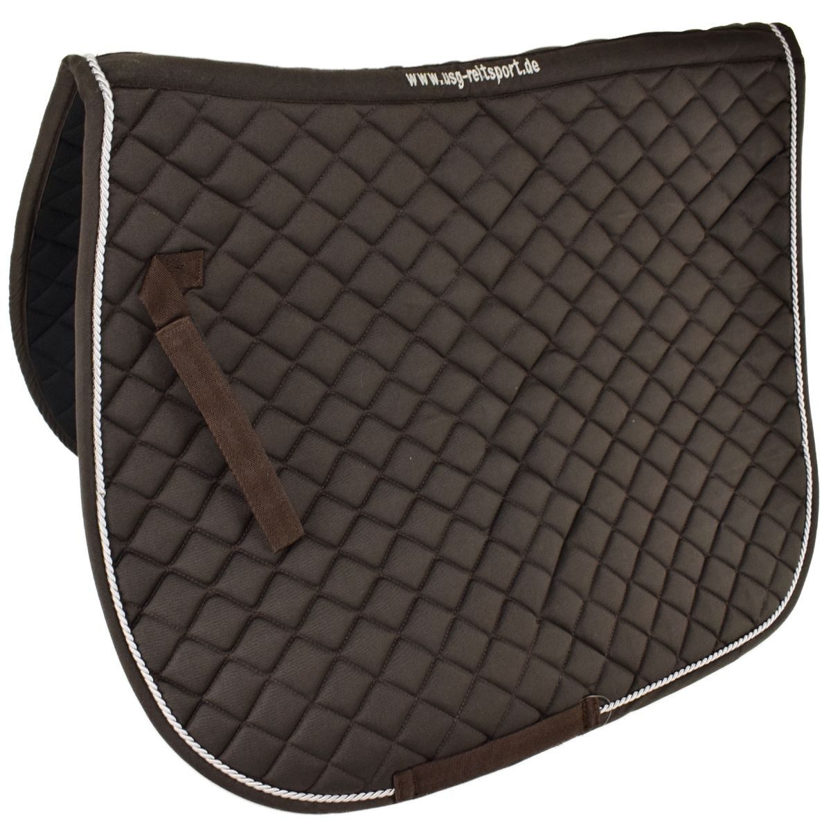 Verleihen Sie neue Farbe mithilfe von dieser ansprechenden Schabracke für Warmblüter. Die DR (Dressur) Sattelunterlage verfügt über Steppmuster, sowie über eine farblich abgesetzte Kordel. Zwei durch Klett verstellbare Befestigungsmöglichkeiten sind ebenfalls gegeben.