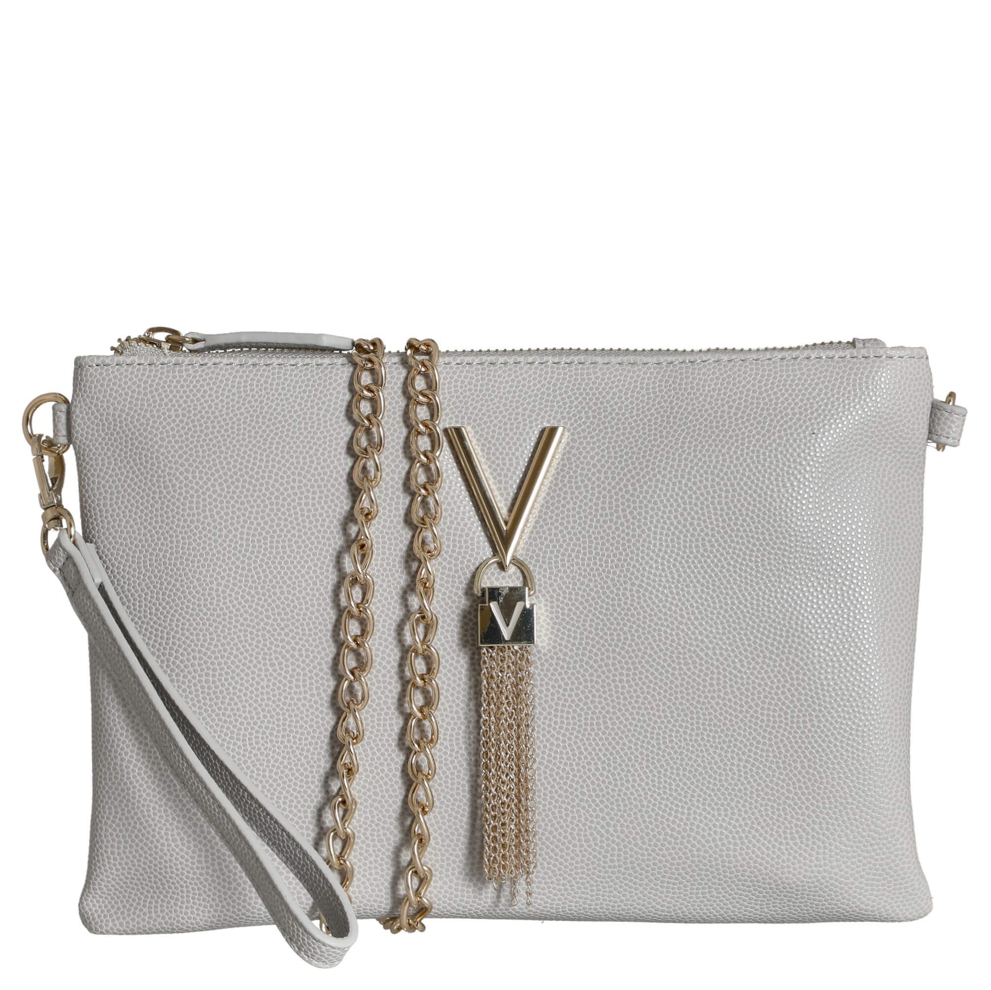 Die Valentino Bags Divina Umhängetasche in der Farbe Ghiaccio vereint zeitlose Eleganz mit praktischen Funktionen. Diese Tasche ist der perfekte Begleiter für modebewusste Frauen, die Stil und Funktionalität schätzen. Mit ihrer raffinierten Optik und den vielseitigen Tragevarianten wird sie schnell zum Lieblingsaccessoire. * Sicherer Reißverschluss: Schützt Ihre Essentials vor ungewolltem Zugriff. * Geräumiges Hauptfach: Bietet ausreichend Platz für all Ihre Utensilien, von Geldbörse bis Kosmetik. * Zusätzliches Reißverschlussfach: Ideal für kleine, wichtige Dinge, die schnell zur Hand sein müssen. * Abnehmbare Handschlaufe: Erlaubt flexibles Tragen, ganz nach Ihrem Bedarf. * Elegante Tragekette: Verleiht der Tasche einen Hauch von Raffinesse, perfekt für besondere Anlässe. * Stilvoller Valentino Bags-Anhänger: Ein markantes Detail, das den Look abrundet. Die Inneneinrichtung der Tasche ist durchdacht gestaltet, um Ihnen optimalen Stauraum zu bieten, während die äußere Gestaltung durch ihre schlichte Eleganz besticht. Ob im Alltag oder bei besonderen Gelegenheiten, die Valentino Bags Divina Umhängetasche in Ghiaccio ist die ideale Wahl für jede modebewusste Frau.