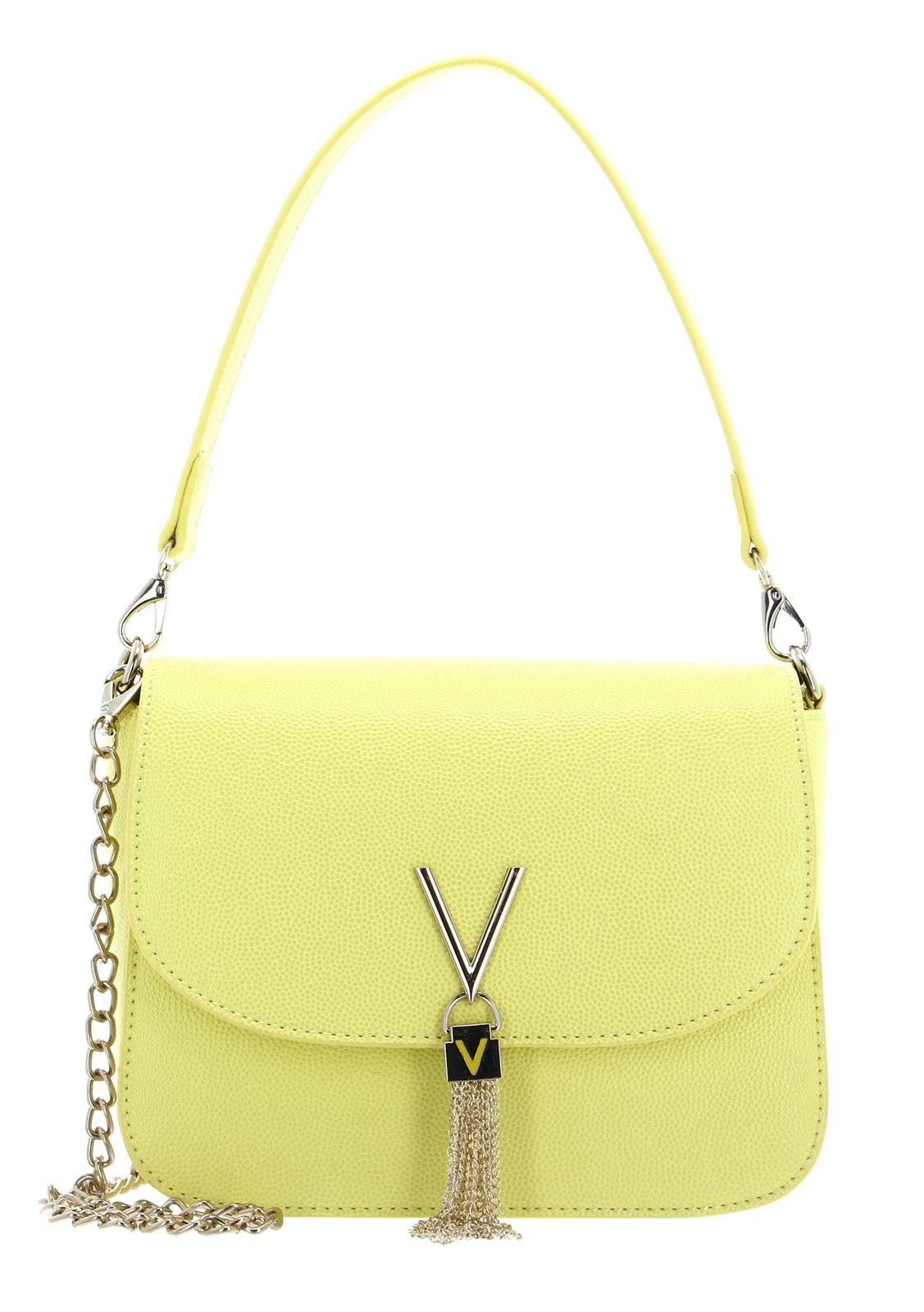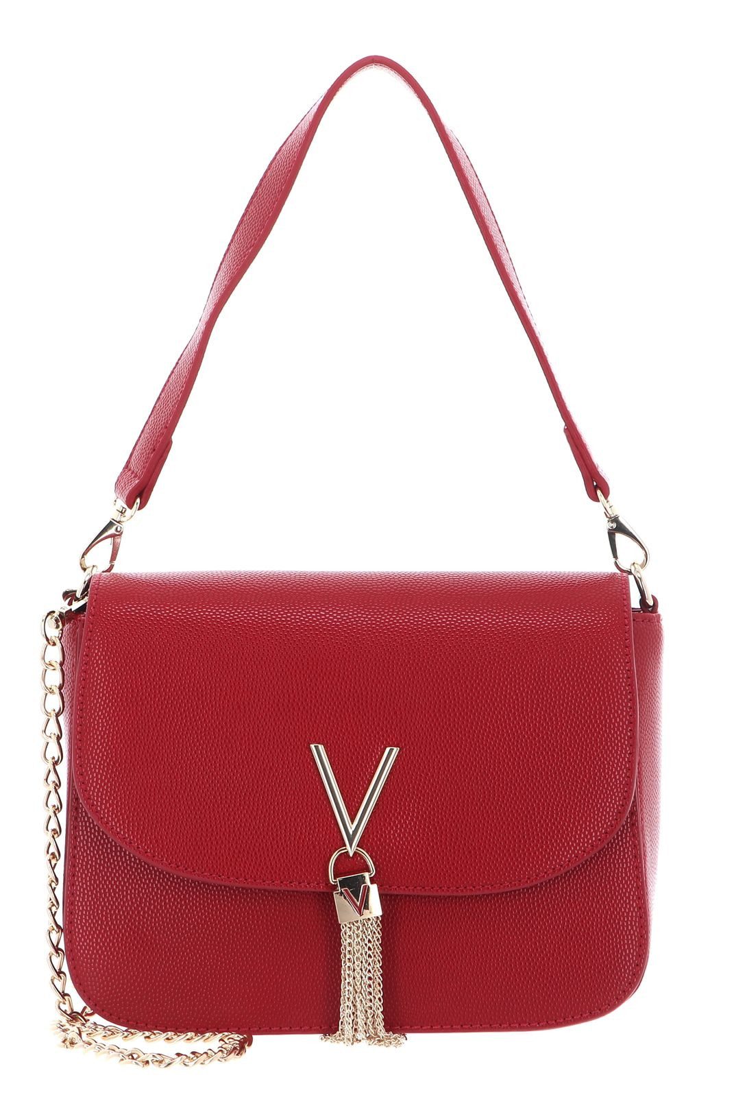 Mit dieser stylischen Schultertasche verleihen Sie Ihren Outfits das perfekte Accessoire und runden diese damit ideal ab. Auf der Vorderseite ist eine edle Quaste mit Ketten unter dem Logo angebracht, die den Look perfekt auflockert. Sie können die VALENTINO BAGS Tasche mit einem kurzen Henkel und einem langen Schulterriemen als Kette präsentieren. Ihre persönlichen Dinge werden in der VALENTINO BAGS Divina Shoulder Bag sicher aufbewahrt, denn sie wird mit Überschlagklappe und Magnetverschluss geschlossen.