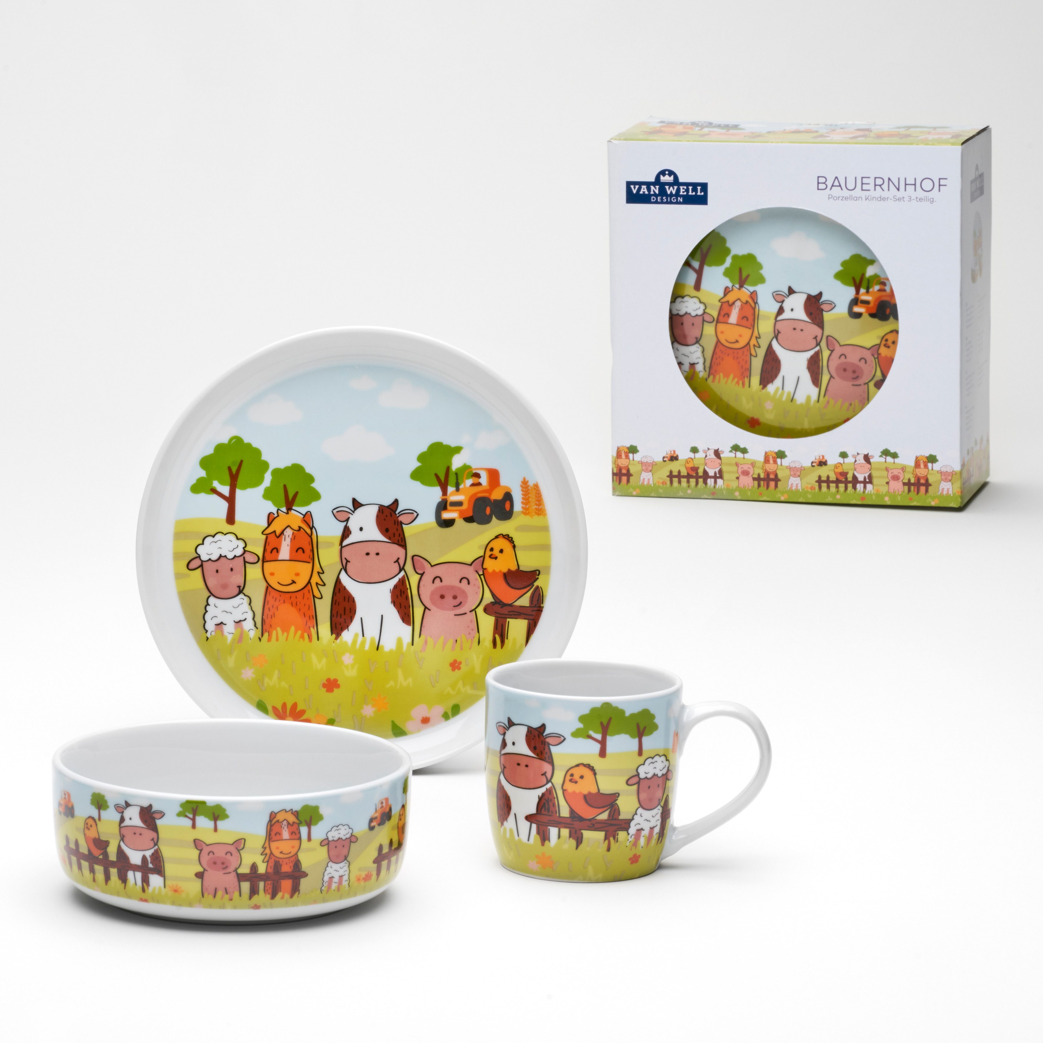 Das "Bauernhof"-Set wird aus hochwertigem Porzellan gefertigt und mit großer Sorgfalt verarbeitet - alle Teile sind sowohl spülmaschinen- als auch mikrowellengeeignet