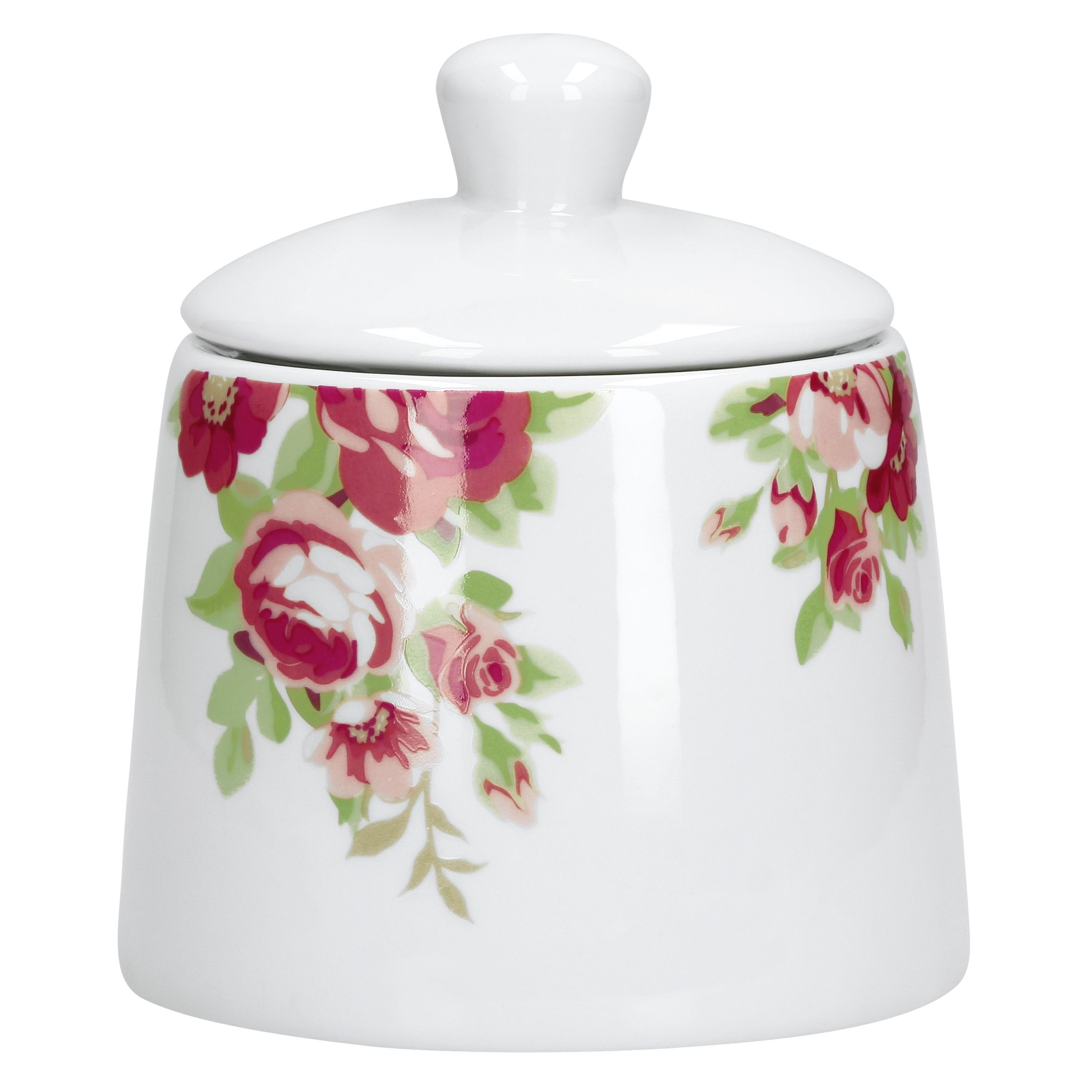 Rosentraum ist eine moderne Geschirrkollektion aus dem Hause Van Well. Wunderschöne Rosenblüten zieren stilvoll die hochwertige Zuckerdose aus edlem Porzellan. Nutzen Sie kleine Porzellandose mit Deckel zum Bereitstellen von Kandiskristallen, Zucker und anderen Süßungsmitteln und setzen Sie zugleich romantische Akzente auf der gedeckten Tafel oder bei Tisch!
