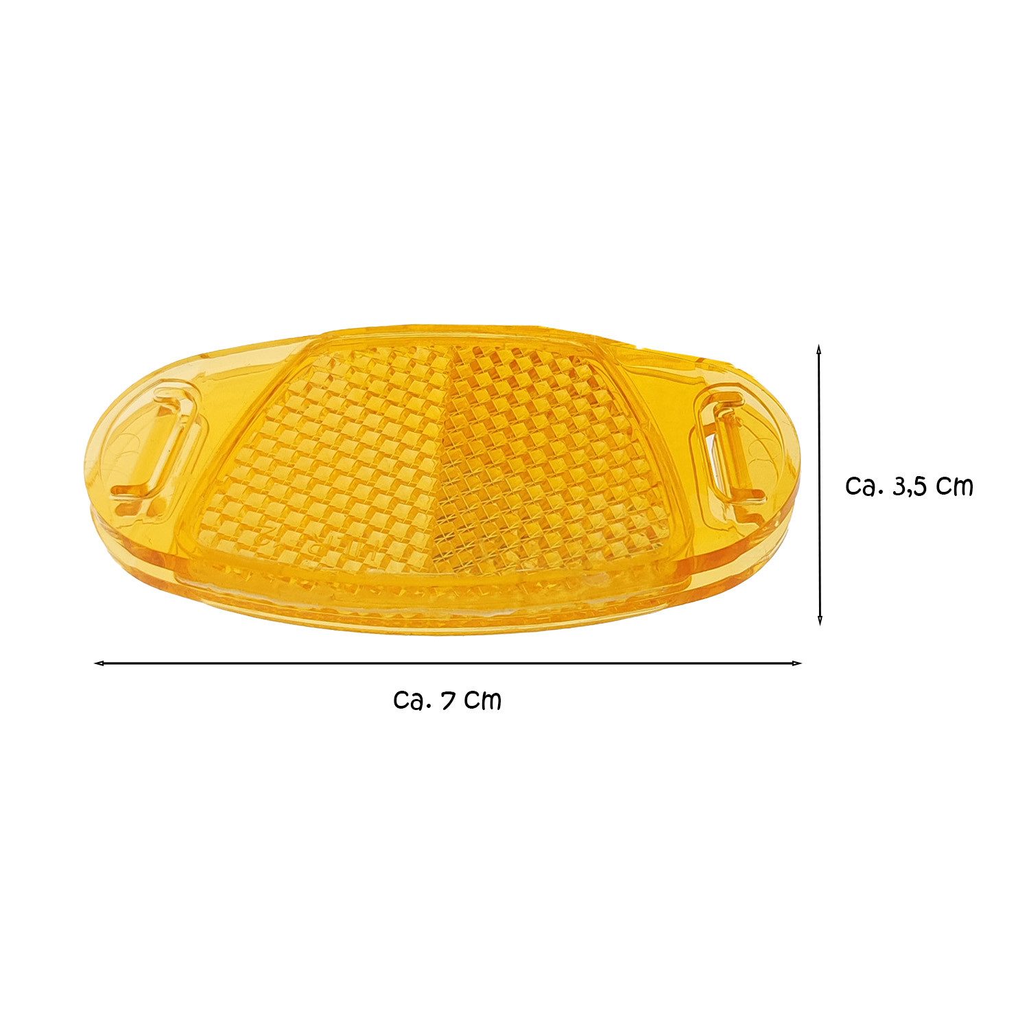 Die Katzenaugen sind aus robusten Kunststoff und somit bruchsicher. Sie werden einfach zwischen die Speichen des Fahrrades geschoben bzw. geklemmt. Dafür beginnt man an der breitesten Stelle und schiebt die Reflektoren runter zum reifen, bis sie fest sitzen. Die Speichenreflektoren bieten durch ihre Reflexionstechnik eine hohe Sichtbarkeit und das ist ein weiterer Faktor um sicher im Straßenverkehr unterwegs zu sein.