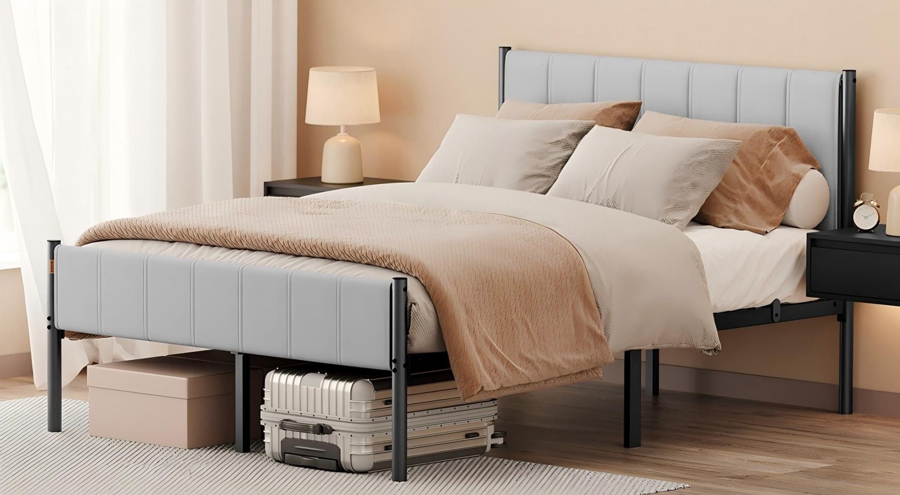 Das Fußteil und die Metall-Stopper dieses Metallbettgestells arbeiten harmonisch zusammen, um jegliche Bewegung der Matratze zu verhindern, sodass Sie eine ungestörte Nachtruhe genießen können.