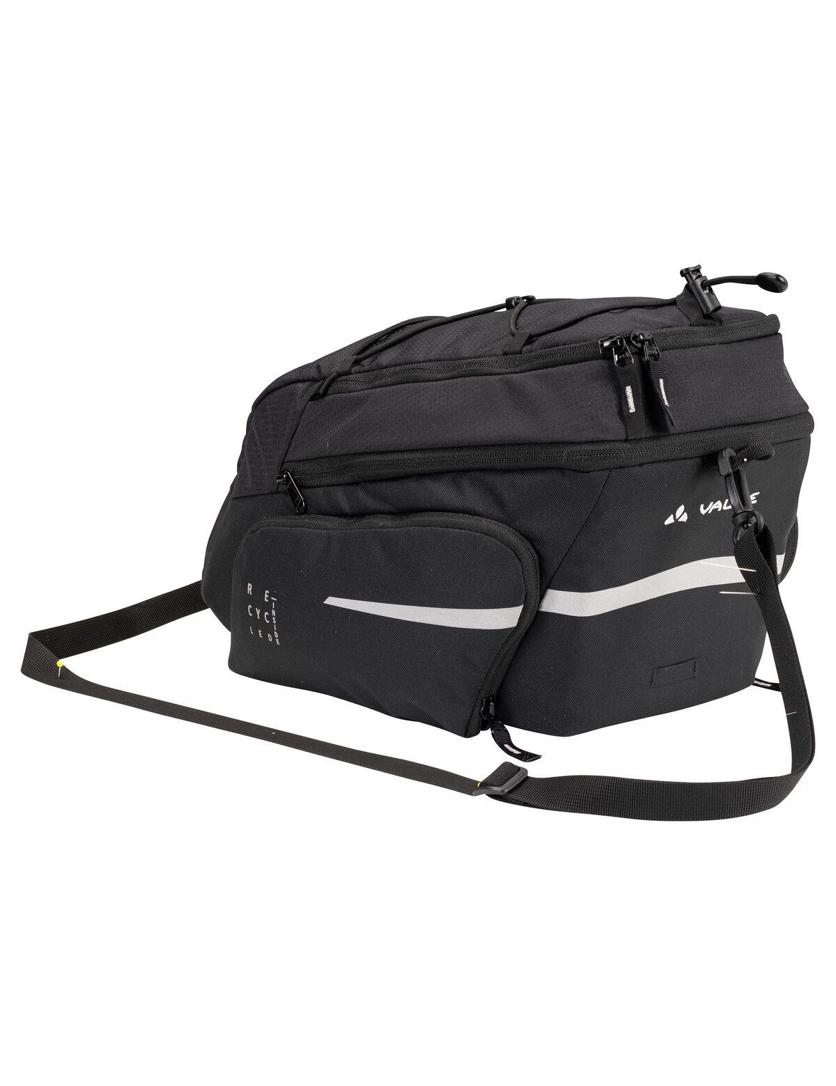 Die Gepäckträgertasche bietet ein Volumen von 9 Litern und lässt sich durch Klettverschlüsse einfach und schnell am Fahrrad befestigen oder abnehmen. Ein besonderes Highlight ist die Adapterplatte, die für die meisten gängigen Systeme geeignet ist. Wenn es auf längere Fahrradtouren geht, kann man die Seitentaschen ausklappen, um zusätzliche 7 Liter Stauraum zu schaffen. Darüber hinaus schafft eine Gummizughalterung auf dem Deckel zusätzlichen Stauraum. Die Gepäckträgertasche wird mit einem abnehmbaren Schultergurt, Reflektorelementen und einer Regenhülle geliefert. Sie wird aus hauptsächlich recycelten Materialien hergestellt und ist umweltfreundlich wasserabweisend ohne Fluorcarbone (PFC) durch Eco Finish behandelt. Das VAUDE Green Shape-Label steht für ein umweltfreundliches und funktionsfähiges Produkt aus nachhaltigen Materialien.