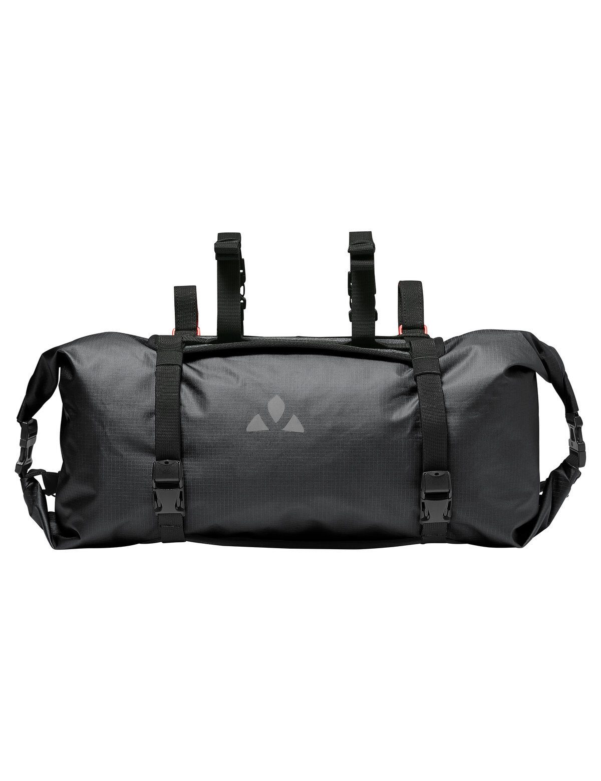 Für Abenteuerlustige! Wer es liebt, mit dem Rad unterwegs zu sein und für die Übernachtung alles Nötige dabeizuhaben, ist mit der wasserdicht verschweißten Lenkertasche auf dem richtigen Weg. Der Packsack mit 13 l ist von beiden Seiten zugänglich und über Wickelverschlüsse wasserdicht komprimierbar und eignet sich hervorragend für leichtes Gepäck und einen Schlafsack. Über Packriemen auf der Oberseite kann zusätzliches Gepäck und sogar ein Zelt außen befestigt werden. Die Halterung des Packsackes passt zu allen Mountainbike-Lenkern und ist mit ihrer Breite von 30 cm auch mit allen gängigen Gravel- oder Rennradlenkern kompatibel. Ihre einfache Montage erfolgt über Lenker- und Steuerrohr. Durch die praktischen Abstandshalter und die in der Breite verstellbaren Fixierungen wird immer genügend Freiheit zu Brems- und Schaltzügen gewährleistet. Zusätztliche, farbige Klett-Komprimierungsgurte in der Horizontalen wie ein Zwillingsband in der Vertikalen halten die Tasche auf jeder Schotterpiste ruckelfrei in Position. Praktisches Feature ist der Tragegurt, mit dem die Trailfront einfach und locker über der Schulter getragen werden kann. Die Lenkertasche ist nicht nur ein praktischer Begleiter fürs Bikepacking. Sie leistet auch ganze Arbeit in Sachen Umweltschutz, denn sowohl Halter als auch Packsack bestehen zu 100 % aus recycelten Materialien.