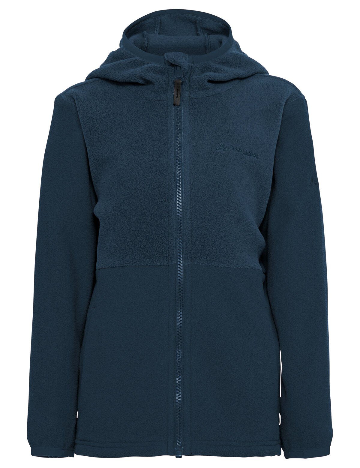 Zum "Immer-dabei-haben": Die kuschelig weiche Pulex Fleecejacke für Kinder wärmt solo getragen an moderaten Herbsttagen und kann als zusätzliche Wärmeschicht in alle zip-in fähigen VAUDE Kinderjacken (mit Ausnahme der Escape 3in1 Jacke) eingezippt werden. Dadurch wird eine Regenjacke ruckzuck zur warmen Winterjacke! Die Pulex Kinderjacke mit Kapuze ist ein Allroundtalent für Waldkindergarten, Schule und Outdoorausflüge. In die großzügigen Eingrifftaschen passen kalte Finger, kleine Fundstücke oder das Taschentuch. Die elastischen Einsätze an den Armbündchen und am Saum halten die Wärme zuverlässig am Körper und die weiche Kapuze schützt die Ohren vor kaltem Wind. Die Pulex Kapuzenjacke für Kinder ist nicht nur schön warm, sondern auch pflegeleicht, strapazierfähig, atmungsaktiv und außerdem aus recyceltem Material hergestellt - der Umwelt zuliebe. Die funktionelle VAUDE Kinderbekleidung zeichnet sich durch hochwertige Materialien, kindgerechte Passformen und Farben sowie eine umweltfreundliche Herstellung aus. Wir entwickeln durchdachte Kinder-Outdoorbekleidung, die sich durch ihre Langlebigkeit auch von Kind zu Kind weitervererben lässt. Das VAUDE Green Shape-Label steht für ein umweltfreundliches, funktionelles Produkt aus nachhaltigen und bluesign® zertifizierten Materialien.