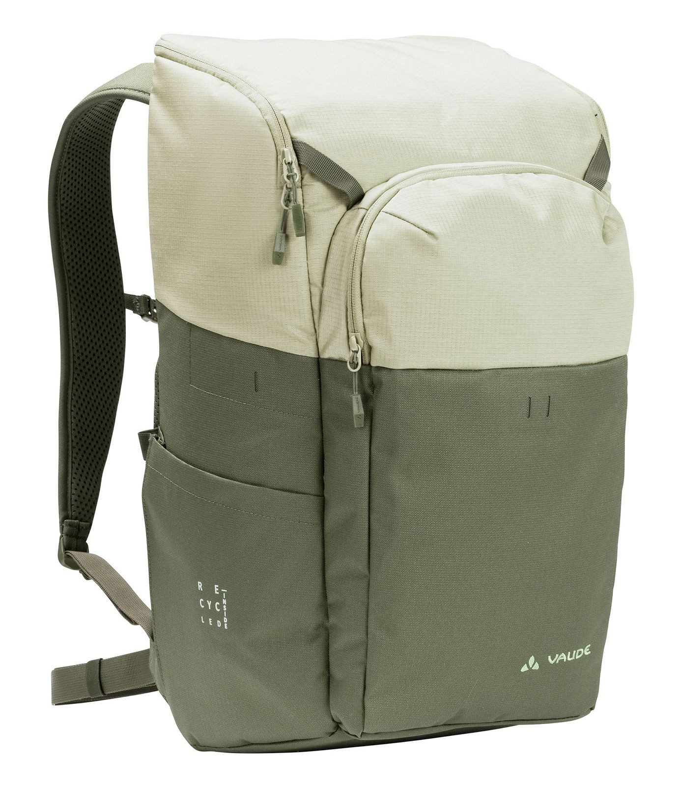 Viel Platz für große Vorhaben: Der Albali II aus umweltfreundlich recyceltem Material ist unser größter Stadtrucksack für viele Einsatzmöglichkeiten. Satte 32 l nehmen den Einkauf auf, große Ordner, Jacke, Trainingsschuhe und einiges mehr. Das geräumige Hauptfach mit durchdachter Innenorganisation bietet durch die weite Öffnung eine gute Übersicht und eine einfache Beladung. Die Ausstattung des 32 l Stadtrucksacks hat es ebenfalls in sich: Es gibt ein separates, gepolstertes Fach für Laptops bis zu 15,6", ein separates Fach für A4-Unterlagen, eine innenliegende Netztasche für die Getränkeflasche oder das Netzkabel, einen Schlüsselhalter, ein wattiertes Smartphonefach und weitere Steckfächer für übersichtliche Ordnung und schnellen Zugriff. Der gut gepolsterte Vent-Urban Rücken und die weichen Schultergurte sorgen zusammen auch bei schwererer Beladung für einen guten Tragekomfort. Wer möchte, kann ein Light me up Kit dazubestellen, um es in die Vorrichtung einzuschlaufen und in Kombination mit einer herkömmlichen Powerbank zum Leuchten zu bringen - vor allem für Fahrradpendler*innen in der Dämmerung ein echter Pluspunkt. Radtauglich machen den 32 l Stadtrucksack auch der weitenverstellbare Brustgurt und die zusätzlichen Bänder für die Helmfixierung. Der Rucksack ist mit Eco Finish umweltfreundlich wasserabweisend ohne Fluorcarbone (PFC) behandelt und hält auch mal einen kurzen Regenguss oder Nieselschauer stand. Unterm Strich ein vielseitiger, gut ausgestatteter Stadtrucksack für Alltag und Freizeit, der für Schule, Uni, Arbeitsweg und Shopping gleichermaßen funktioniert. Das VAUDE Green Shape-Label steht für ein umweltfreundliches, funktionelles Produkt aus bluesign®-zertifizierten, nachhaltigen Materialien.