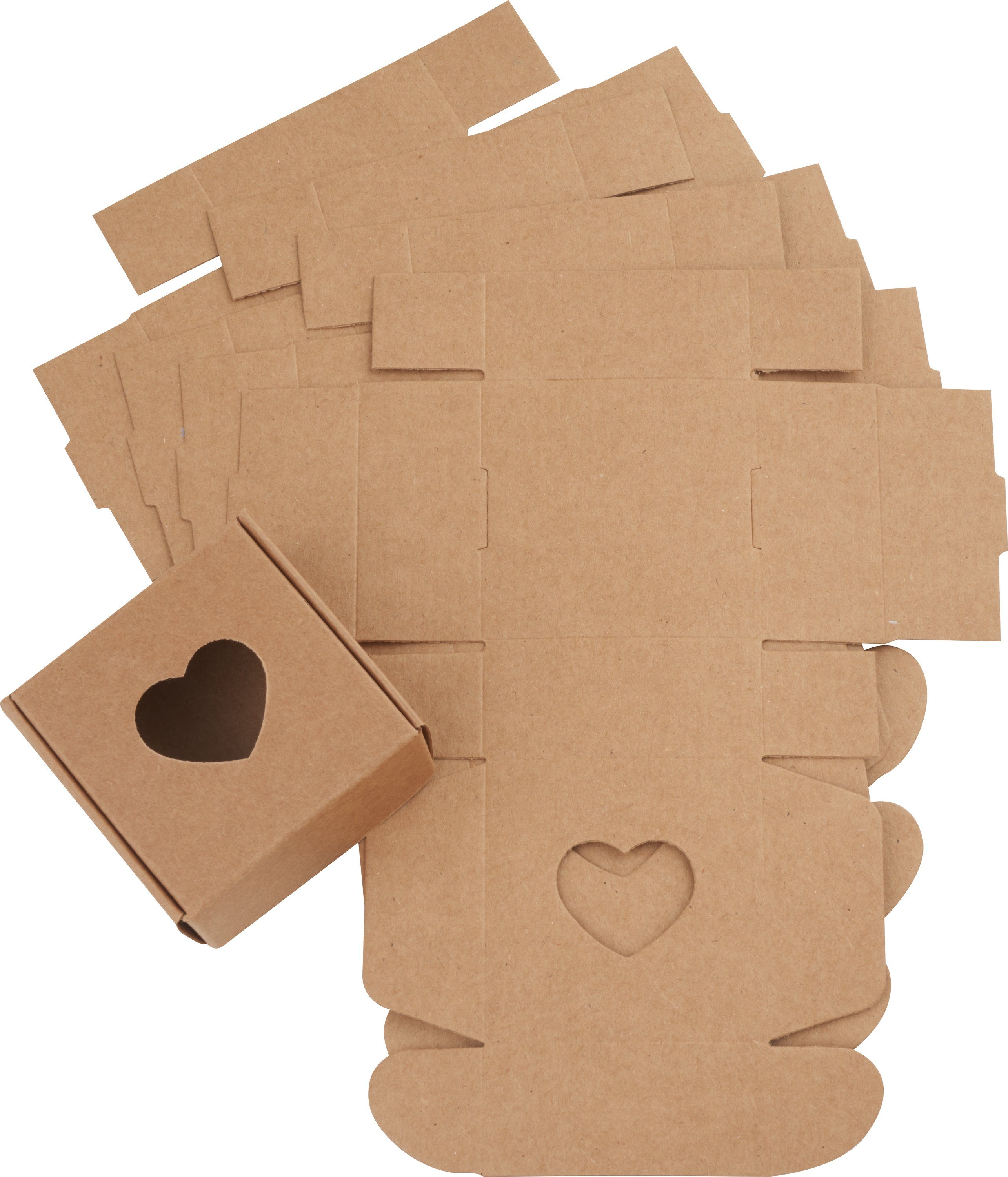 5 VBS Kraftpapierschachteln 'Herz' mit Falzungen zum einfachen Zusammenstecken ohne zusätzlichen Kleber. Die fertigen Schachteln haben eine Размер von ca. 7 x 7 cm und eine Höhe von ca. 3 cm. Das ausgestanzte Herz im Deckel kann mit Strohseide oder Transparentpapier hinterlegt werden. Für liebevolle Botschaften und Mitbringsel oder auch einen Weihnachtskalender ideal. Aus Kraftpapier