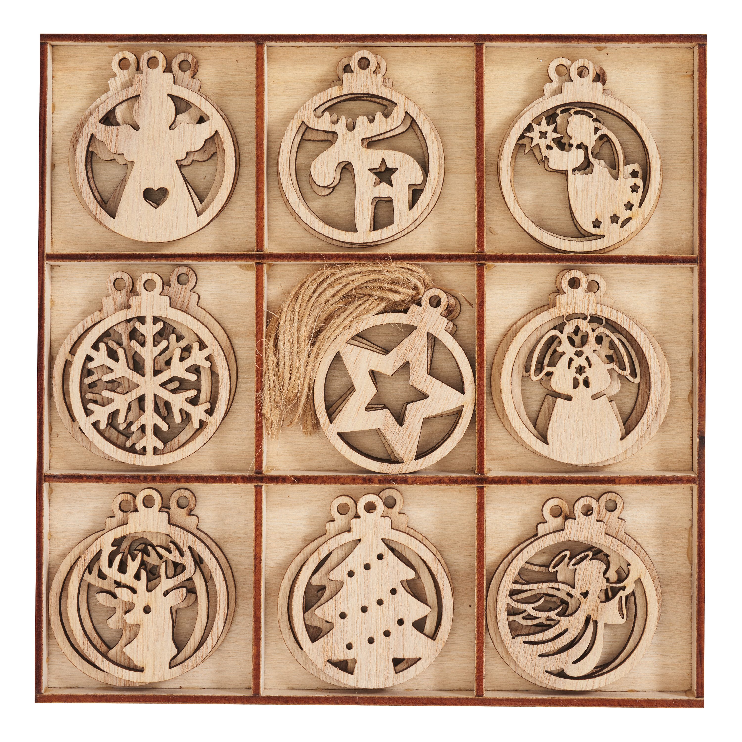 Für deine kreative Weihnachtsdekoration: Die VBS Anhänger 'Baumkugeln' in einer praktischen Holzbox sind perfekt für die Gestaltung von Adventskränzen, Türkränzen und Gestecken. Verwende die 9 verschiedenen Motive wie Engel, Rentier, Schneeflocke, Stern und Tannenbaum für deine floristischen Kreativarbeiten. Bemale und verziere die Anhänger aus Sperrholz mit Bastelfarbe oder Glitter ganz nach deinem Geschmack. Auch für Scrapbookarbeiten, Grußkarten und Geschenkverpackungen sind die Anhänger ideal. Der Ø beträgt 4,5 cm und das Set enthält 27 Stück. Lass deiner Fantasie freien Lauf und verzaubere dein Zuhause mit den dekorativen Baumkugel-Anhängern.