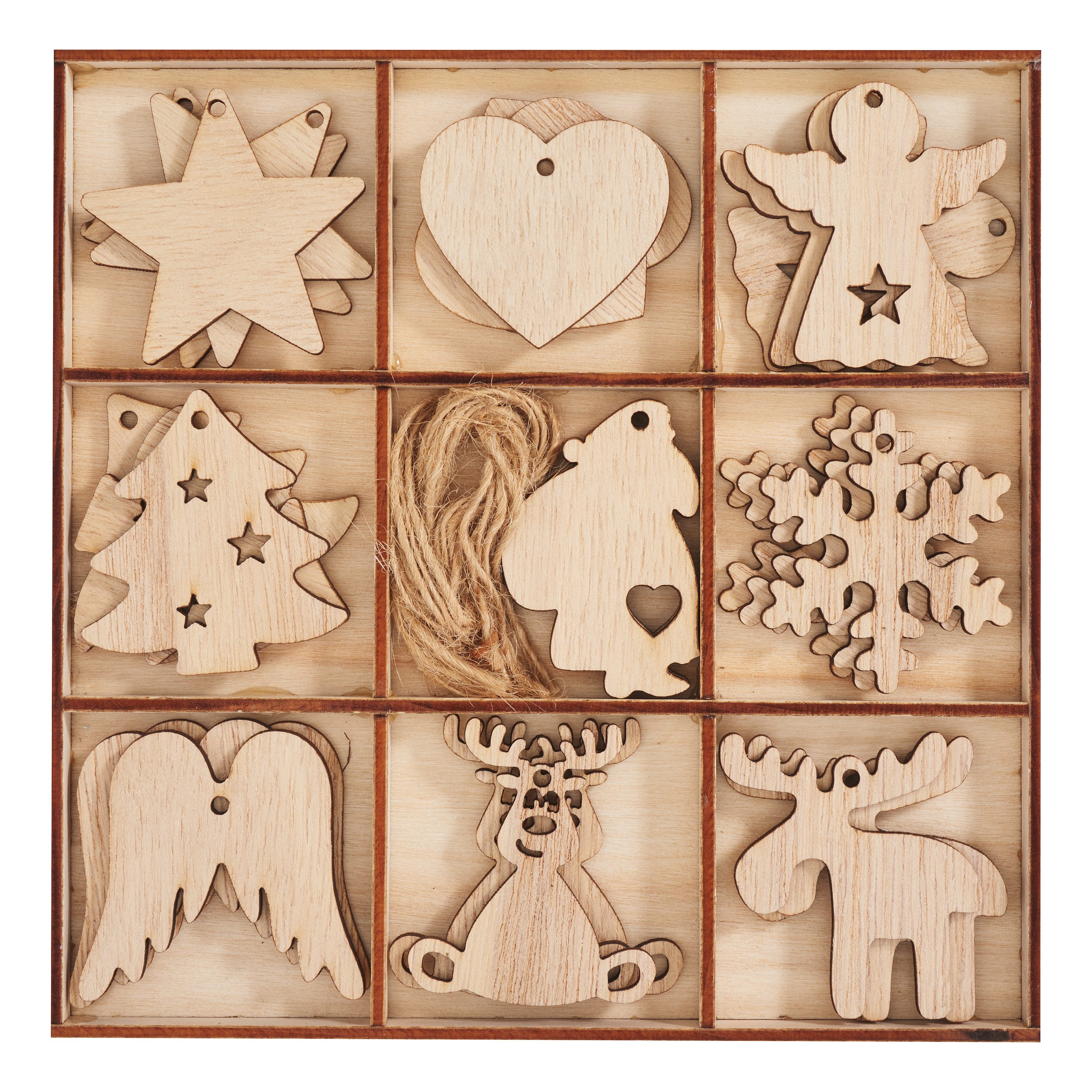 Eine festliche Dekoration für die Weihnachtszeit: Die VBS Anhänger 'Heartfelt' bieten dir unendliche Möglichkeiten, um deine Kreativität auszuleben. Die liebevoll gestalteten Anhänger in Stern-, Herz-, Engel-, Tannenbaum-, Weihnachtsmann-, Schneeflocken-, Engelsflügel- und Rentierform können mit Bastelfarbe oder Glitter individuell verziert werden. Mit insgesamt 27 Stück in einer praktischen Holzbox sind sie perfekt für Adventskränze, Türkränze, Gestecke und andere floristische Projekte. Aber auch zum Gestalten von Scrapbookarbeiten, Grußkarten, Geschenkverpackungen und mehr sind sie bestens geeignet. Verschönere deine weihnachtlichen Kreationen mit den vielseitigen VBS Anhängern 'Heartfelt'.
