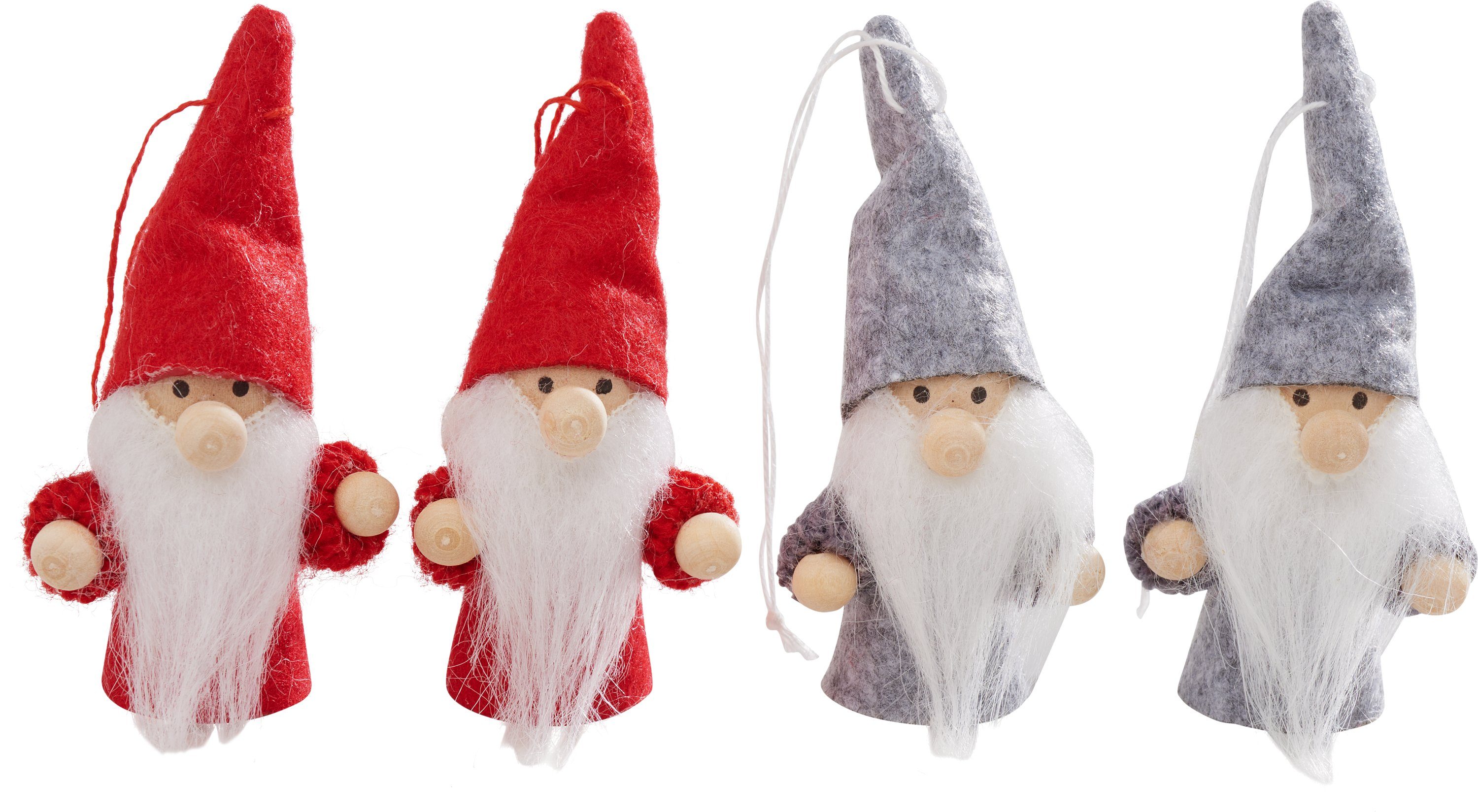 VBS Anhänger Wichtel 'Nosse', 4 Stück in Grau und Rot aus Holz mit Filz und weißem Bart. Ca. 8 cm groß. Die 4 Figuren können an Zweige gehängt, im Tannenbaum, in Gestecken und Kränzen platziert oder für Geschenkverpackungen verwendet werden. Auch auf einem Tablett mit Deko-Schnee, einer Lichterkette und kleinen Tannenbäumen sind die Wichtel ein toller Hingucker in einer winterlichen Miniaturlandschaft.