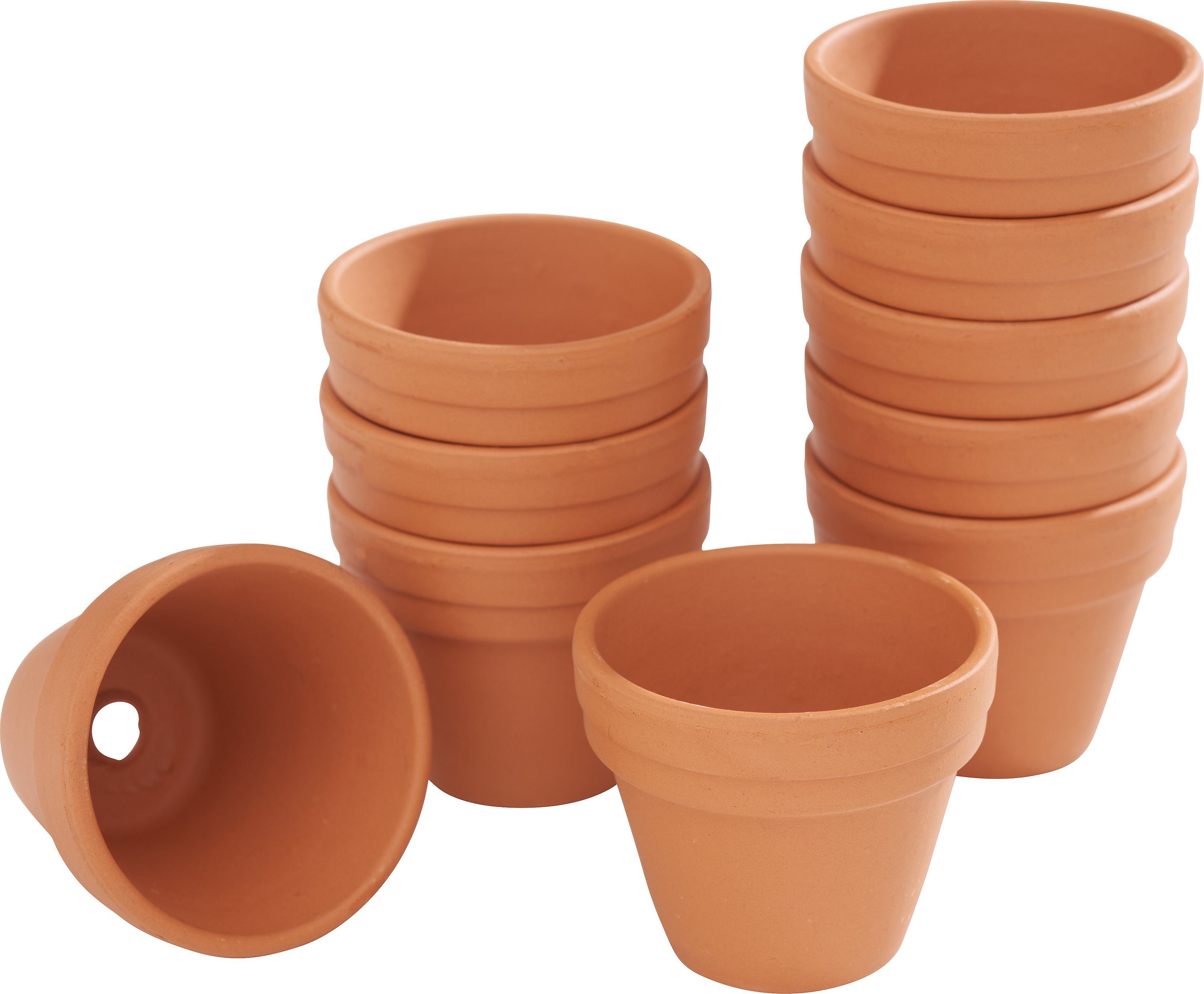 Die Töpfe sind aus Terrakotta, rund und unglasiert. Sie können sie auch als Blumentöpfe oder Pflanztöpfe nutzen, denn am Boden befindet sich für den Wasserdurchlass ein Loch.