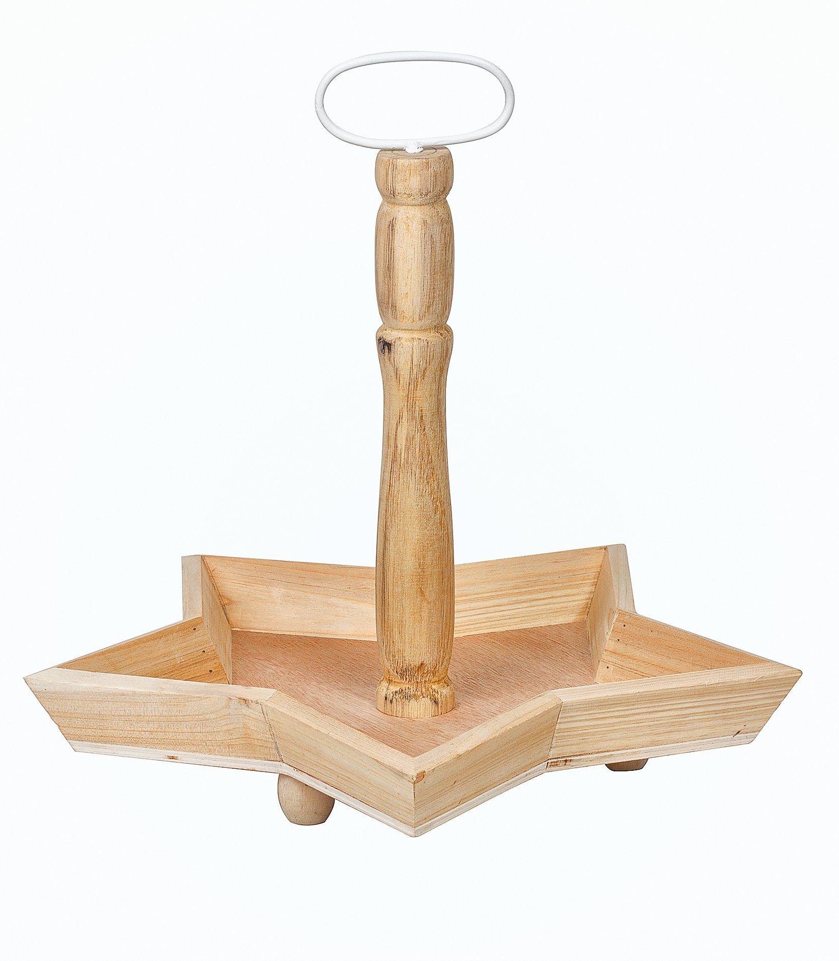 Schönes, hochwertig verarbeitetes Tablett auf drei runden Füßchen. Die Lieferung erfolgt zerlegt, der Griff lässt sich mühelos in das Gewinde einschrauben.