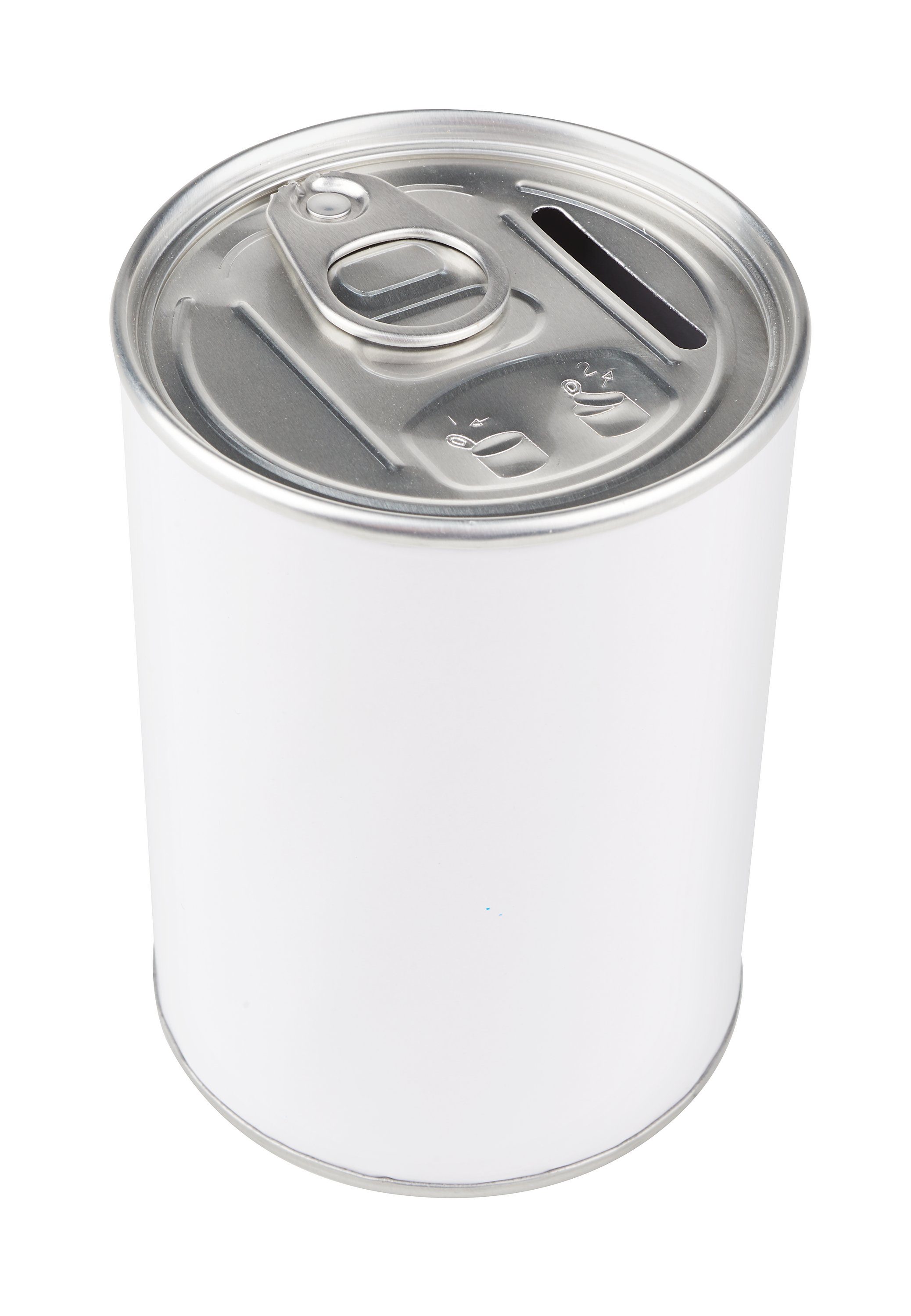 Diese Spardose aus Weißblech in der Optik normaler Pfanddosen ist mit einem weißen Glanzpapier umklebt und kann ganz nach Belieben mit Farbstiften bemalt, mit Papier beklebt oder mit Wollfäden umwickelt werden. Размер der Dose: Ø 7,5 cm, 10,5 cm hoch.