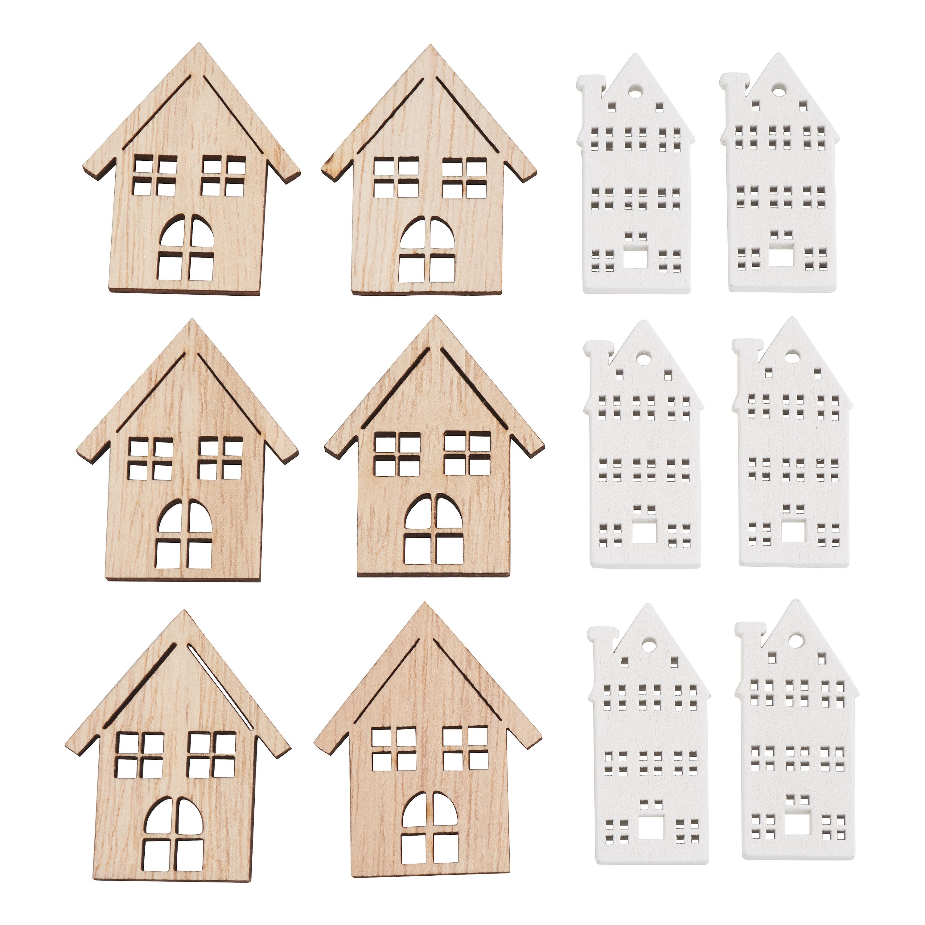 VBS Streuteile 'Häuser', 12 Stück, aus Sperrholz gefertigte Häuser. Sie eignen sich perfekt zum Verzieren von Karten, Schachteln, Geschenken oder als Tischdekoration. Auch in floristischen Arrangements kommen sie wunderbar zur Geltung. Ganzjährig einsetzbar, sind sie ein vielseitiges und einzigartiges Element für deine DIY-Projekte. Lass dich von der Vielfalt der Anwendungsbereiche inspirieren und entdecke die unendlichen Möglichkeiten, die dir die VBS Streuteile 'Häuser' bieten.