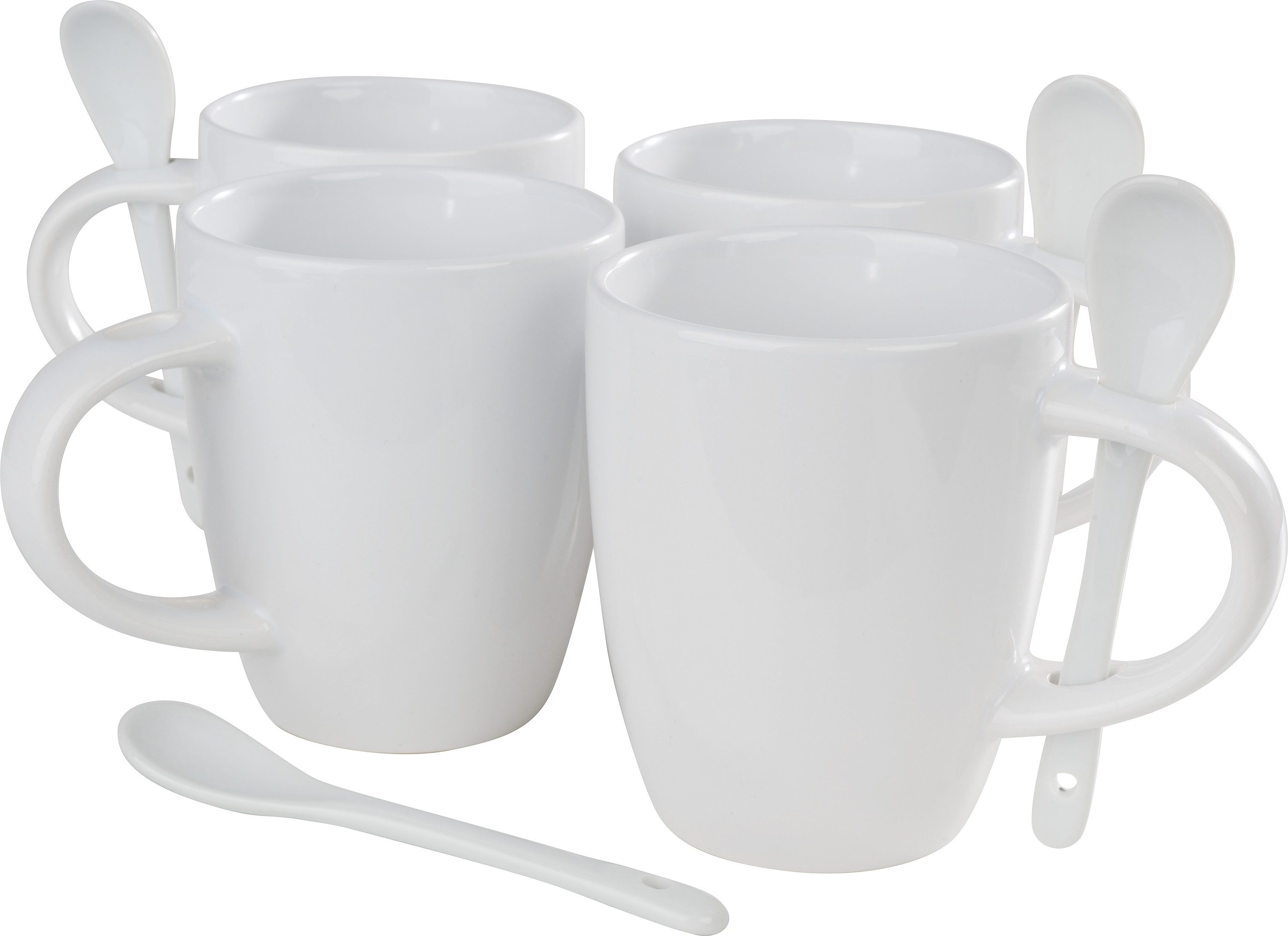 VBS Becher mit Löffel aus Porzellan und einer Füllmenge von jeweils 300 ml. Im Set enthalten sind 4 Becher und 4 Löffel. Die Becher haben im Henkel eine Löffelhalterung. Der Tassen-Ø oben beträgt ca. 8,5 cm und unten ca. 5,5 cm. Ein großartiges Set zum Verschenken und zur individuellen Gestaltung. Perfekt für eine Gestaltung mit Porzellan-Markern, Porzellanmalfarbe, Serviettentechnik und vieles mehr.