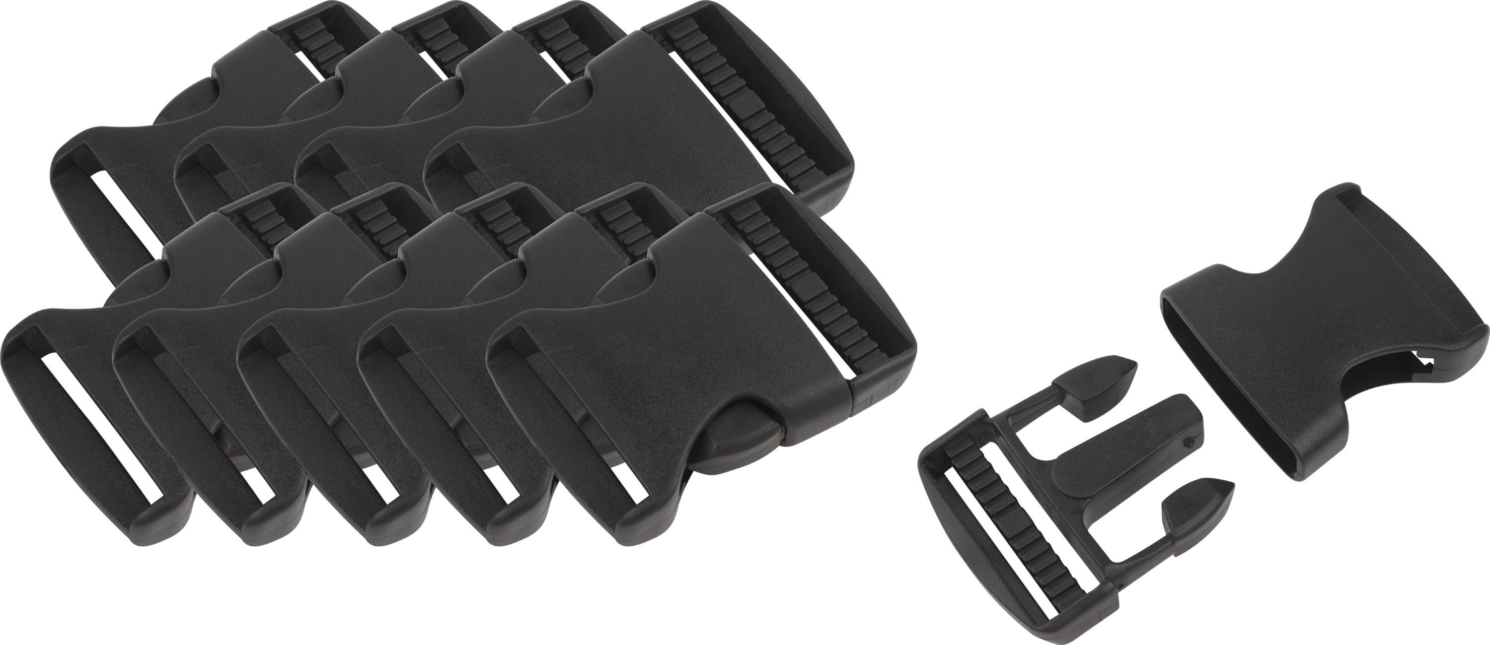 VBS Steckschnallen / Klickverschlüsse im 10er-Set für Bänder mit einer Breite von ca. 38 mm. Die Schnallen haben insgesamt eine Размер von ca. 7 x 4,5 cm und eine Höhe von ca. 1,5 cm. Praktischer schwarzer Klickverschluss aus Kunststoff, für Taschen, Rucksäcke, Latz- und Arbeitshosen.