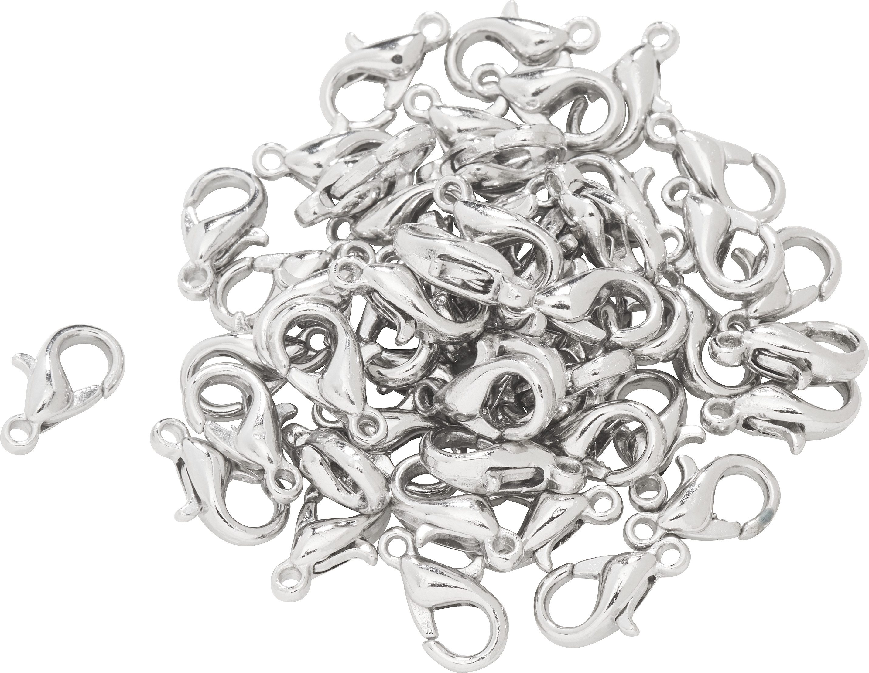 VBS Karabinerverschlüsse '10 mm' als Großpack mit 50 Stück. Versilbert und ideal für die Schmuckgestaltung. Hervorragend zum sicheren Verschließen von Halsketten und Armbändern. Besonders gut für filigrane Schmuckstücke geeignet. Die Menge ist super für Vielbastler.