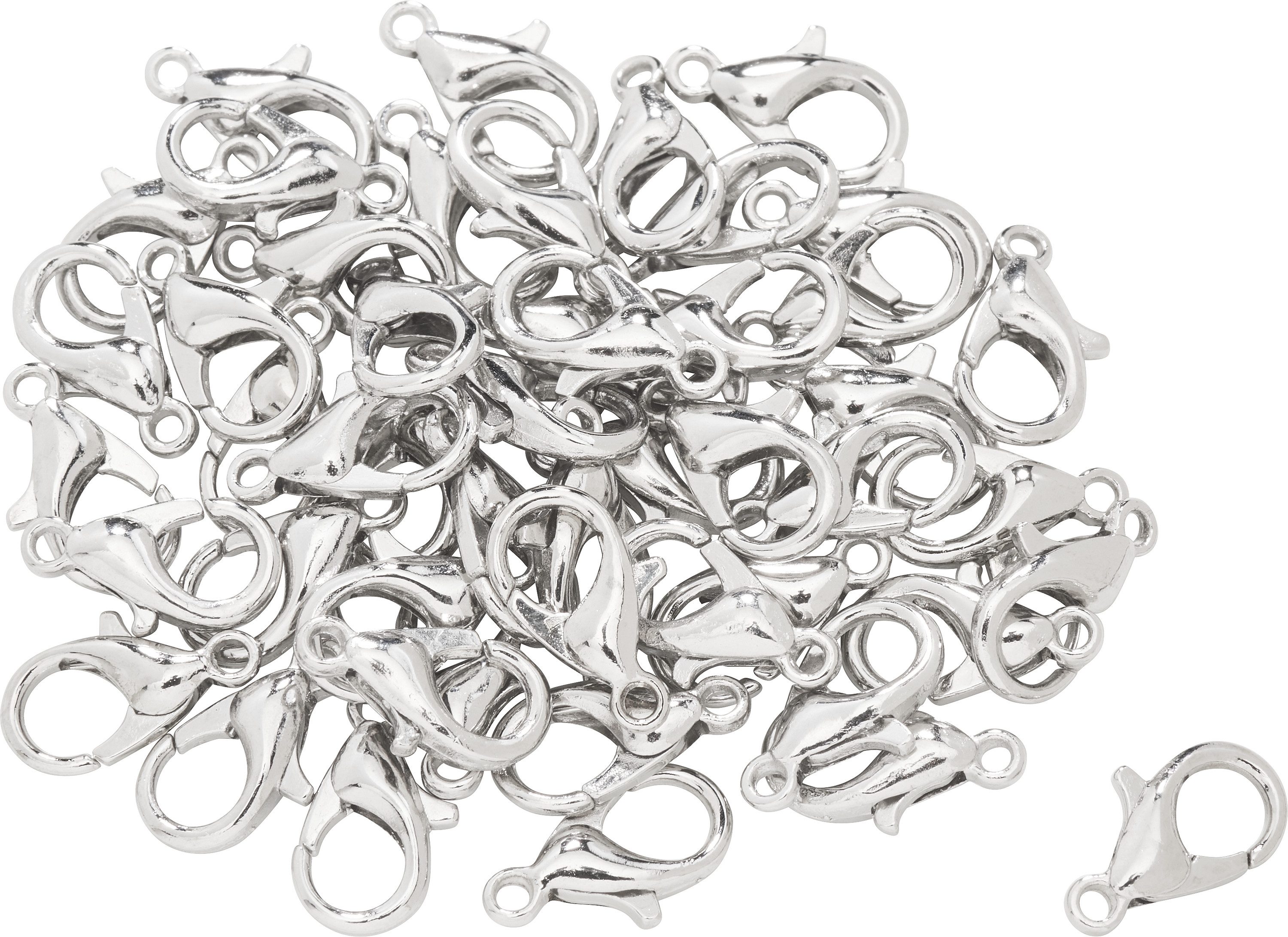 VBS Karabinerverschlüsse '12 mm' als Großmenge mit 50 Stück. Perfekt für die Schmuckgestaltung. Die versilberten Verschlüsse sind ideal für Halsketten und Armbänder. Ein sicherer Verschluss für Ihre Bastelprojekte im Schmuckbereich. Die Menge ist super für Vielbastler.