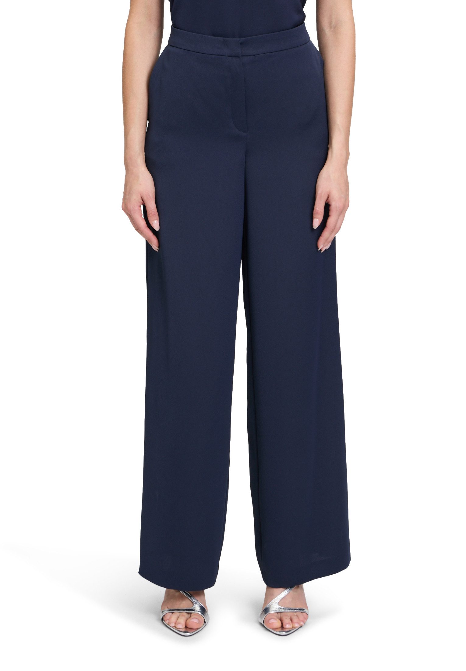 Diese Anzughose von Vera Mont verkörpert zeitlose Eleganz und schlichte Raffinesse. Aus hochwertigem Stoff gefertigt, bietet sie ein angenehmes Tragegefühl und eine perfekte Passform. Die lässige Silhouette verleiht der Hose eine moderne Note, während das Uni-Design sie vielseitig kombinierbar macht. Praktische Taschen verleihen der Hose eine funktionale Komponente, ohne dabei den femininen Charme zu vernachlässigen. Perfekt für einen eleganten Look im Büro oder für formelle Anlässe, diese Hose ist ein unverzichtbares Basic für jede Garderobe.
