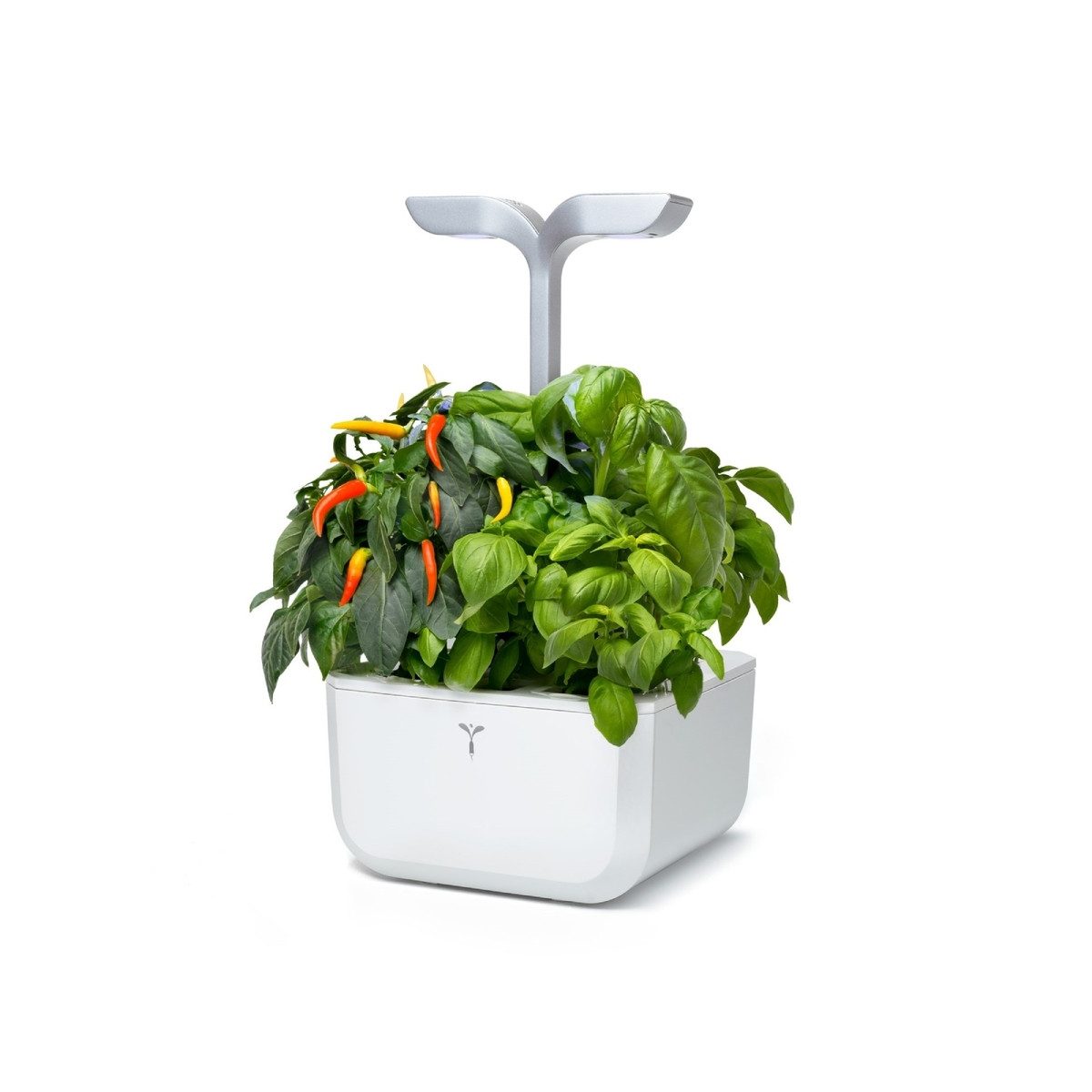 Der intelligente Exky-Innengarten macht es einfach, das ganze Jahr über 2 Pflanzen zu kultivieren, dank seiner Beleuchtung, die sich an das Umgebungslicht anpasst. Jeder Garten wird mit 2 Lingots verkauft: Basilikum und Krause Petersilie.