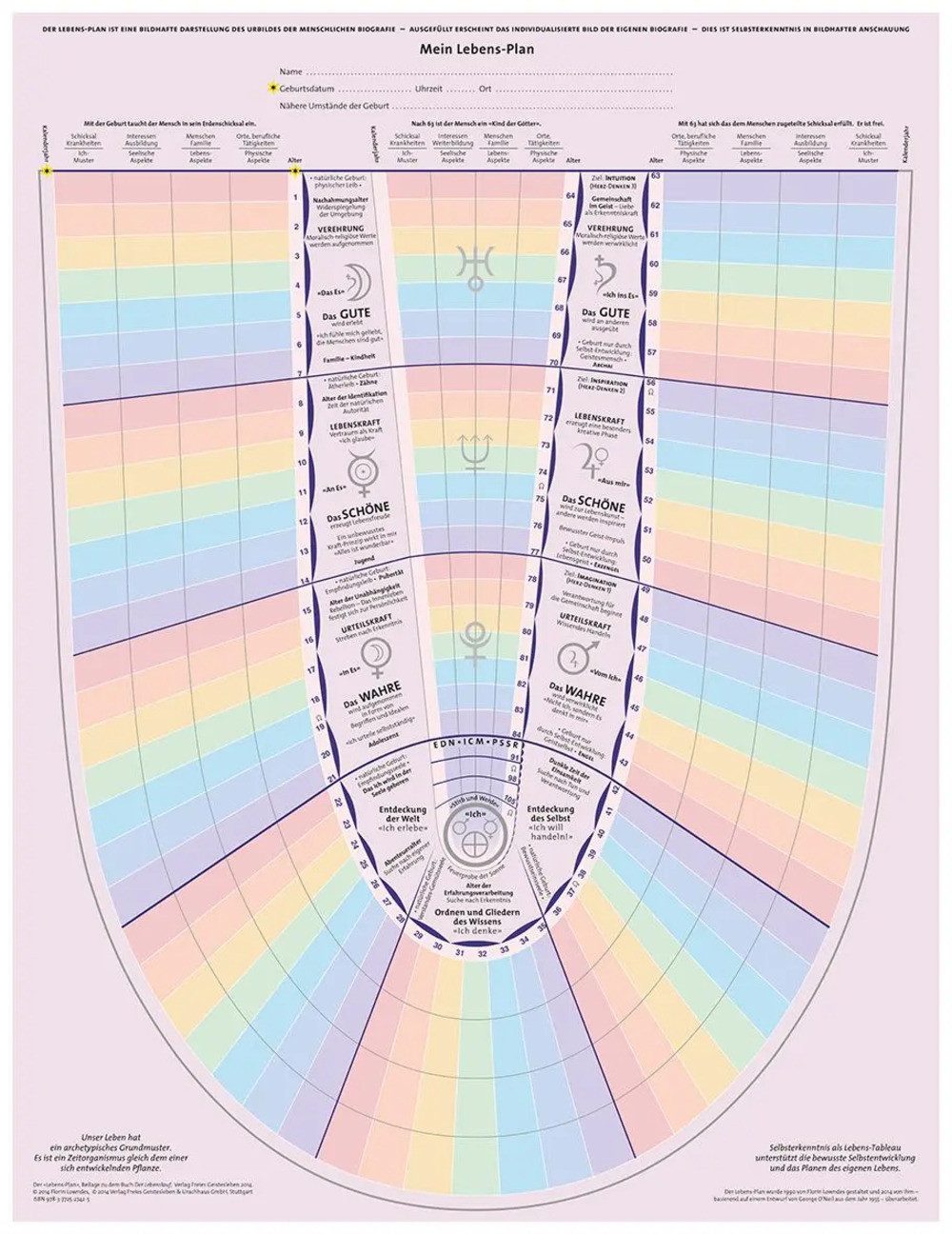 Der Lebensplan ist eine bildhafte Darstellung des Urbildes der menschlichen Biografie. Ausgefüllt erscheint das individualisierte Bild der eigenen Biografie. Dies ist Selbsterkennung in bildhafter Anschauung. Der Lebens-Plan wurde 1990 von Florin Lowndes gestaltet und 2014 von ihm - basierend auf einem Entwurf von George O'Neil aus dem Jahr 1955 - überarbeitet. Er liegt jedem Exemplar des Buches 'Der Lebenslauf' in einem Ex. kostenlos bei und kann zusätzlich, z.B. für die Partnerin oder den Partner sowie für die Gruppenarbeit, einzeln nachbestellt werden.
