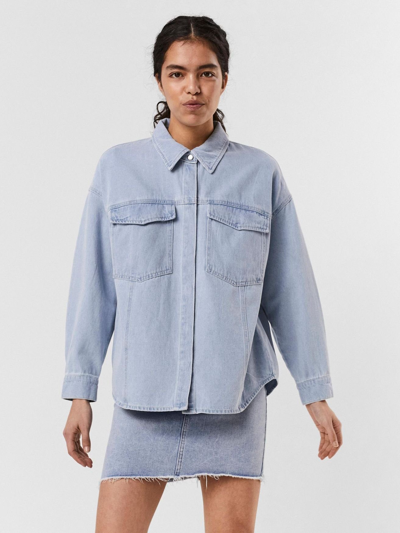 Das einfarbige oversized Hemd von VERO MODA überzeugt durch hochwertige Verarbeitung in klassischen Denim-Optik-Design.