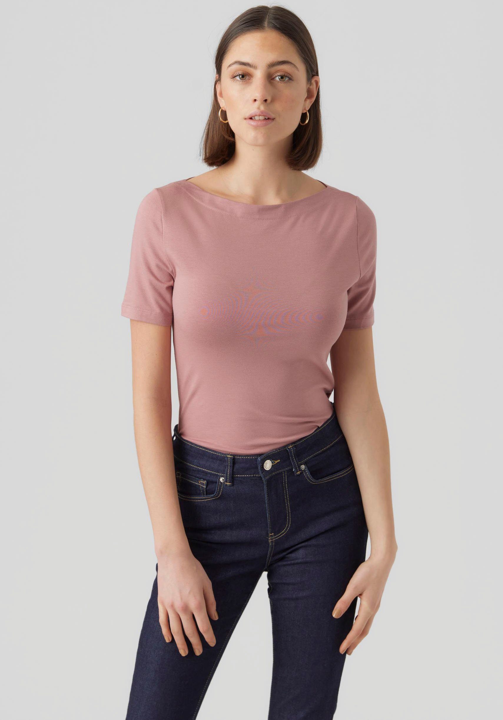 Das Kurzarmshirt von Vero Moda macht alles möglich — ob dezent, cool oder peppig. Dieses Shirt hat einen U-Boot-Ausschnitt und ist normal sowie schmal geschnitten, sodass es deinen Oberkörper schön zur Geltung bringt.