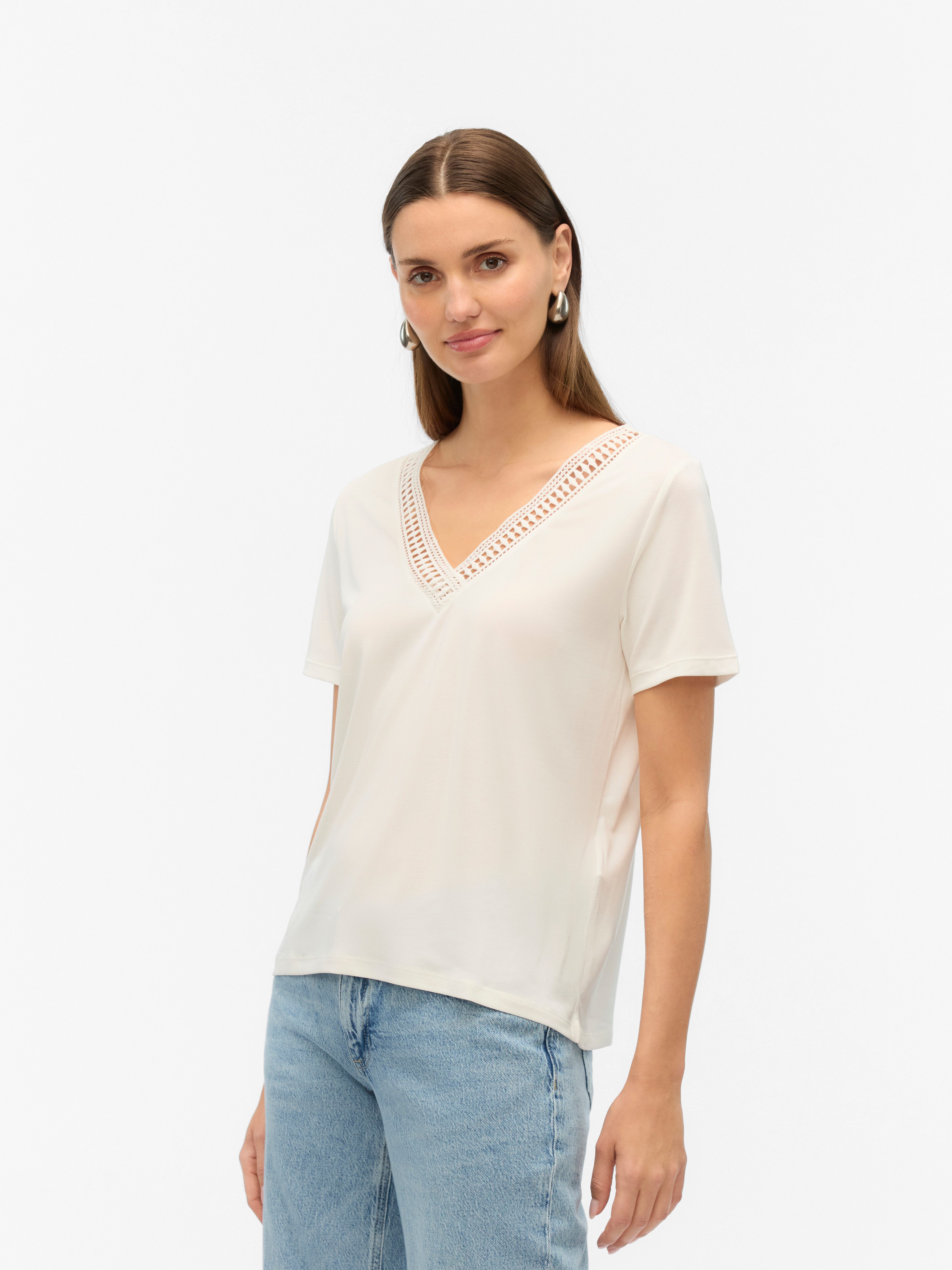 Schau dir das Kurzarmshirt von Vero Moda mal genauer an. Mit der Spitze sieht es romantisch und verspielt aus. Dieses Shirt hat einen V-Ausschnitt und ist basic geschnitten und umspielt deinen Oberkörper locker.