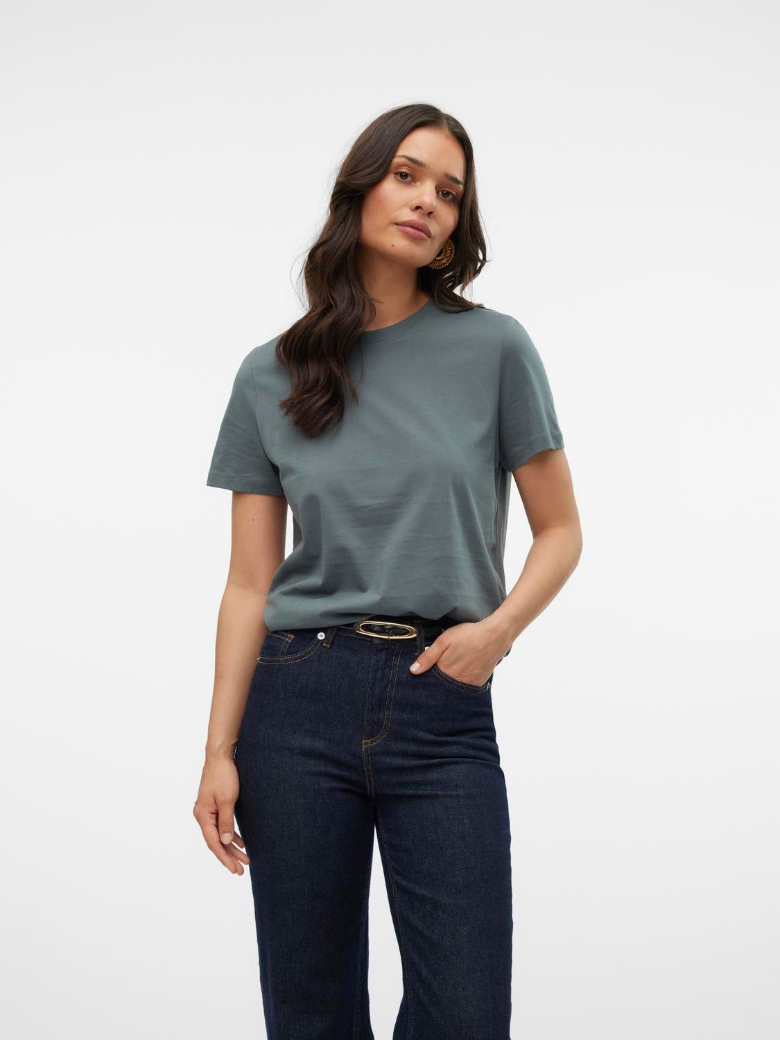 Mit dem Kurzarmshirt von Vero Moda lassen sich einfach neue Outfits zusammenstellen. Dieses Shirt hat einen Rundhalsausschnitt und ist normal.