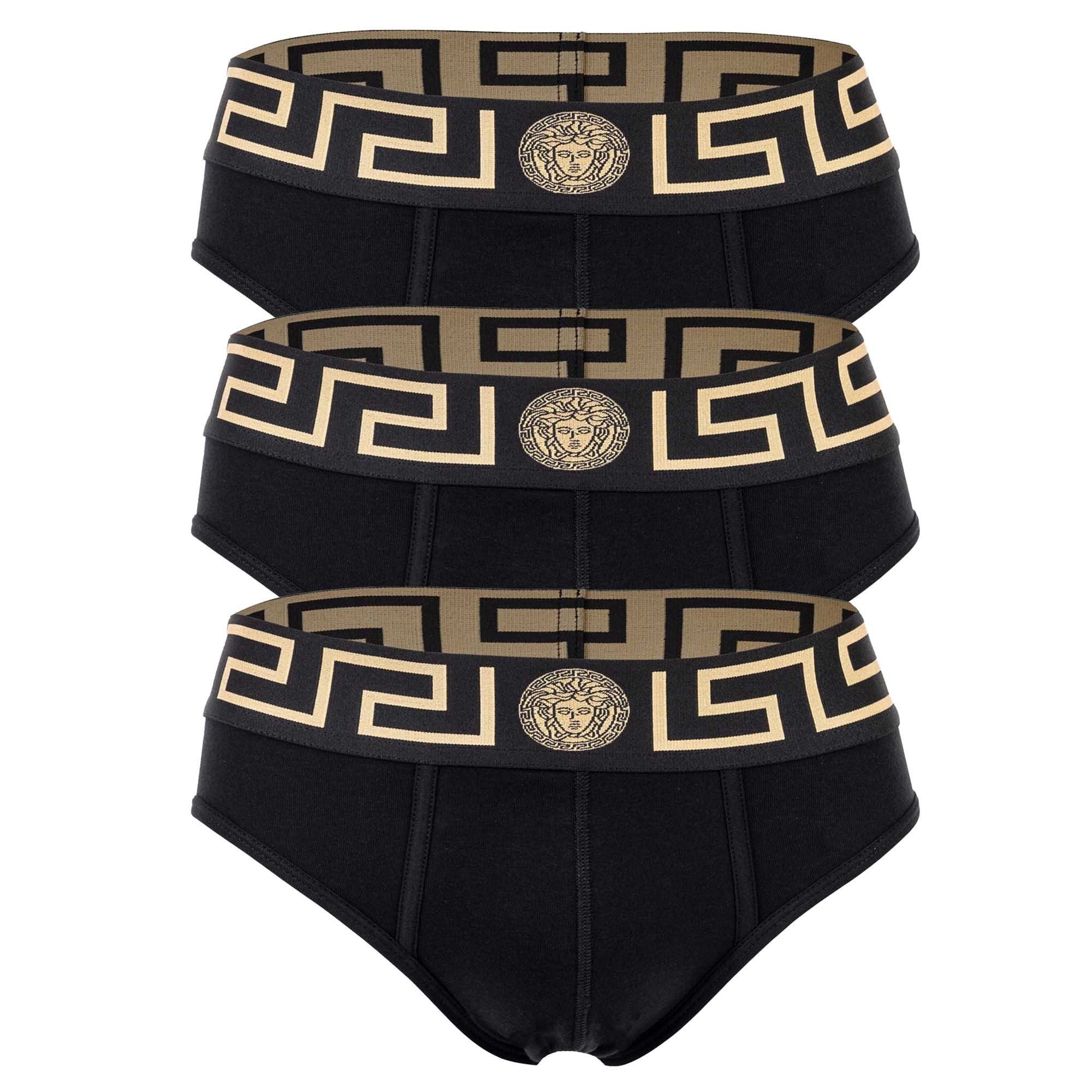 Eleganter Herren Slip der Marke VERSACE. Hochwertige einfarbige Unterhosen. Greca-Muster und Medusa-Motiv am elastischen Bund.