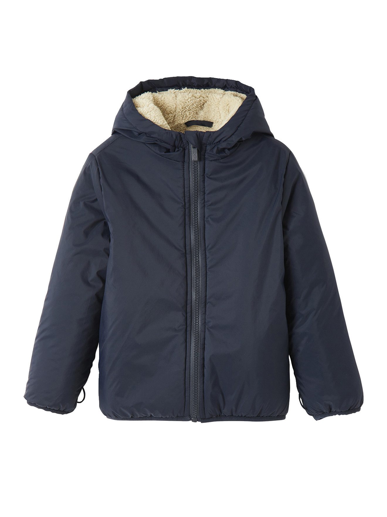 Details: Parka: Wasserabweisendes Material mit Soft-Touch. Kapuze mit Teddyfleece-Futter. Verdeckter Reißverschluss mit Druckknopfpatte und Kinnschutz. 2 Vordertaschen mit Patte. Klettriegel am Ärmelbündchen. Schriftzug an einem Ärmel. Beschreibbares Namensschild innen. Hinten längerer Saum. Kapuzenjacke: Reißverschluss mit Kinnschutz. Teddyfleece-Futter. Beschreibbares Namensetikett innen. Befestigung am Parka mit Reißverschluss.