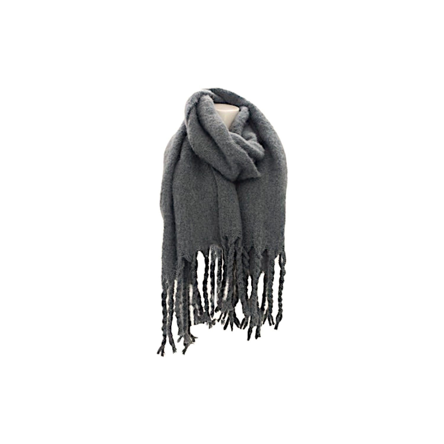 Modischer Winterschal im Dread-Stil – setzt mit dicken Fransen und großzügigem Format stilvolle Akzente in der kalten Jahreszeit.
